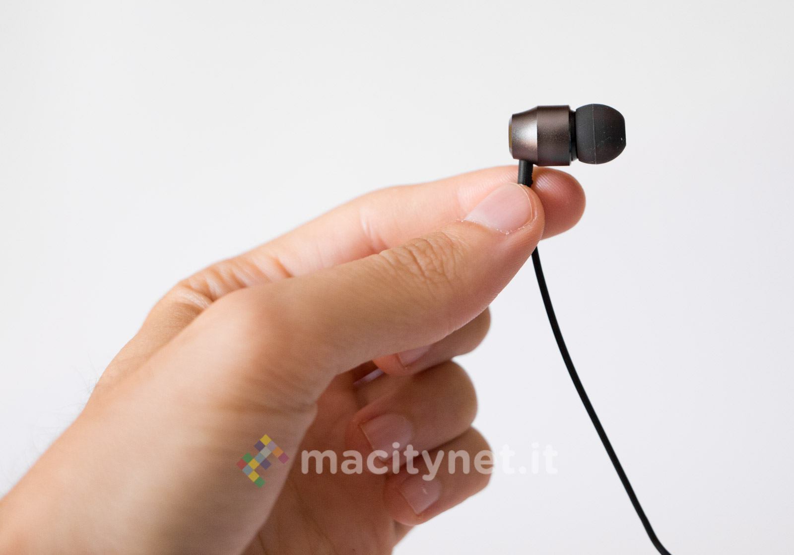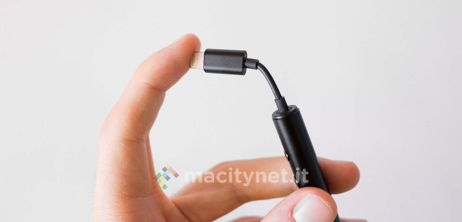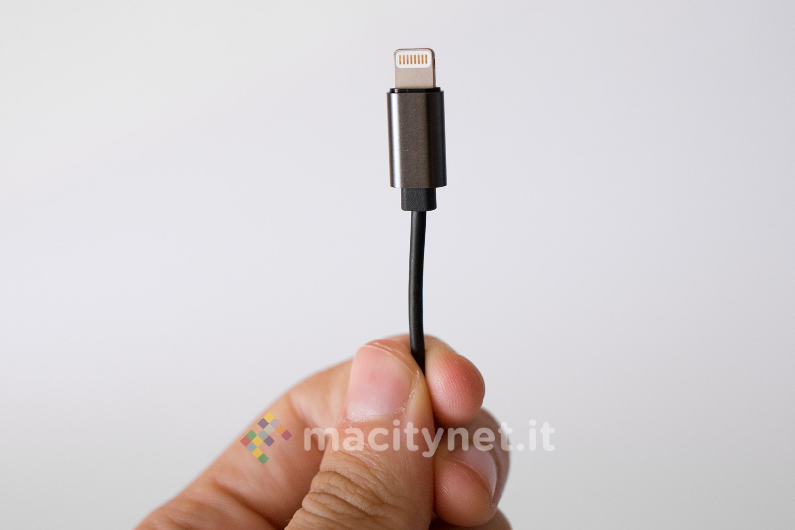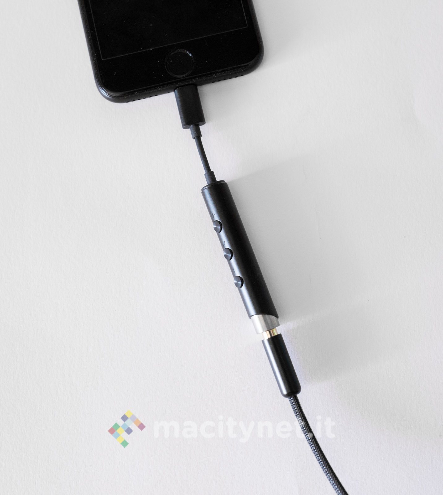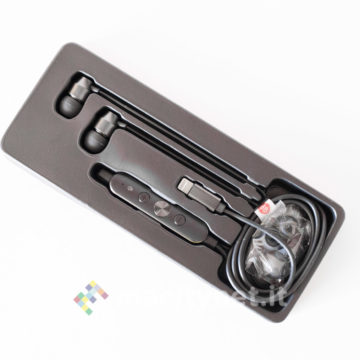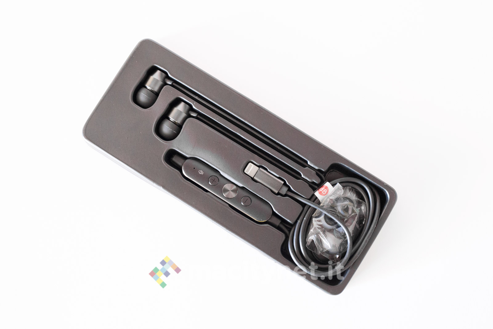 E’ piuttosto piccolo (10.5 x 1 centimetri) e leggero (11 grammi), la spina Lightning è piccola e il corpo principale è realizzato in robusto metallo, con tre pulsanti che permettono di gestire il player musicale senza dover interagire con il touchscreen del telefono.