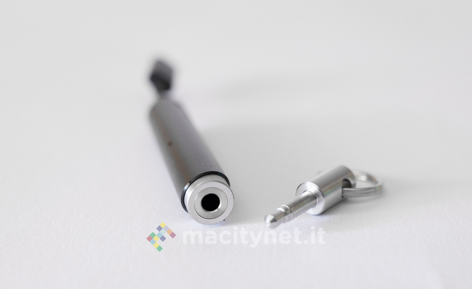 Viene venduto insieme a una sorta di tappo in metallo per la presa jack che ha la duplice funzione di permetterne l’aggancio tramite un anello a un mazzo di chiavi per averlo sempre dietro.