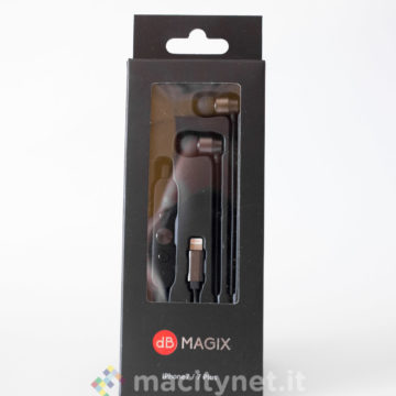 In questi giorni abbiamo provato alcuni accessori di dB Magix per iPhone 7 dedicati al mondo della musica. Uno di questi è PLX1, un paio di auricolari in-ear accompagnati da un’app che permette di amplificare le frequenze con un click; gli altri due (AC1 e AC3) sono adattatori che permettono di collegare le cuffie con cavo jack da 3.5mm attraverso la porta Lightning, uno dei quali offre una presa Lightning passante per poter contemporaneamente ricaricare il telefono.