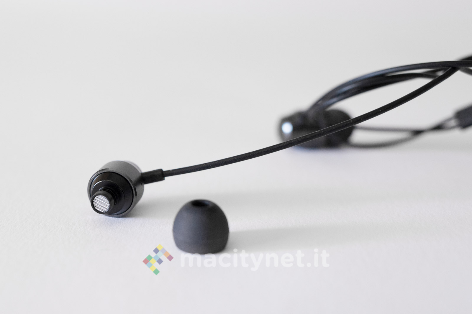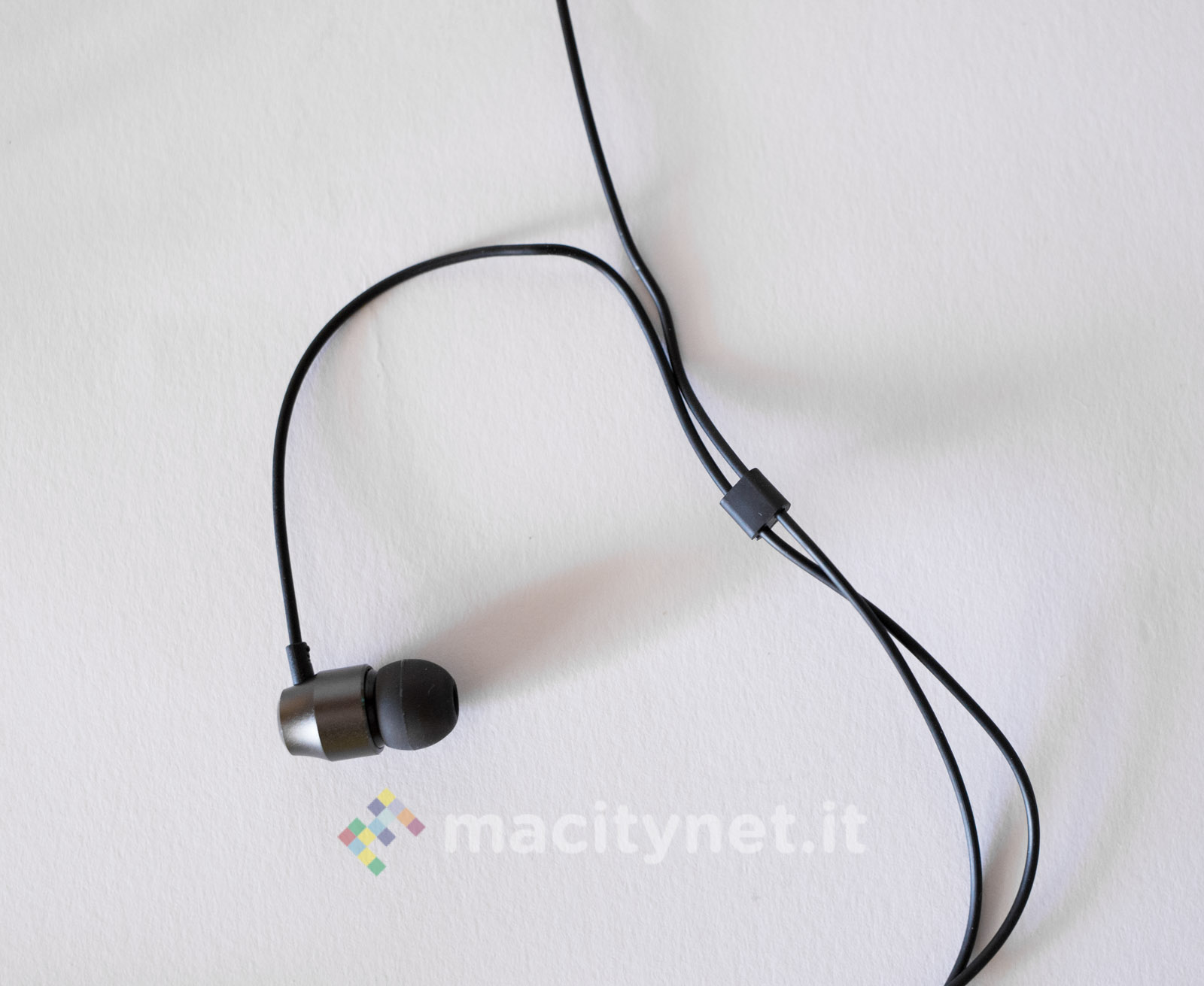 Gli auricolari sono di tipo in-ear, con gommini di varie dimensioni per adattarsi al meglio all’interno di qualsiasi cavità auricolare. Il cavo, con guaina in gomma, che collega gli auricolari al telecomando, è molto sottile, mentre aumenta di spessore quello che va dal telecomando al connettore Lightning. La cassa di quest’ultimo e degli auricolari, sono in alluminio spazzolato: dello stesso materiale è anche il telaio del telecomando, realizzato per il resto della cassa da due coperture in plastica satinata.