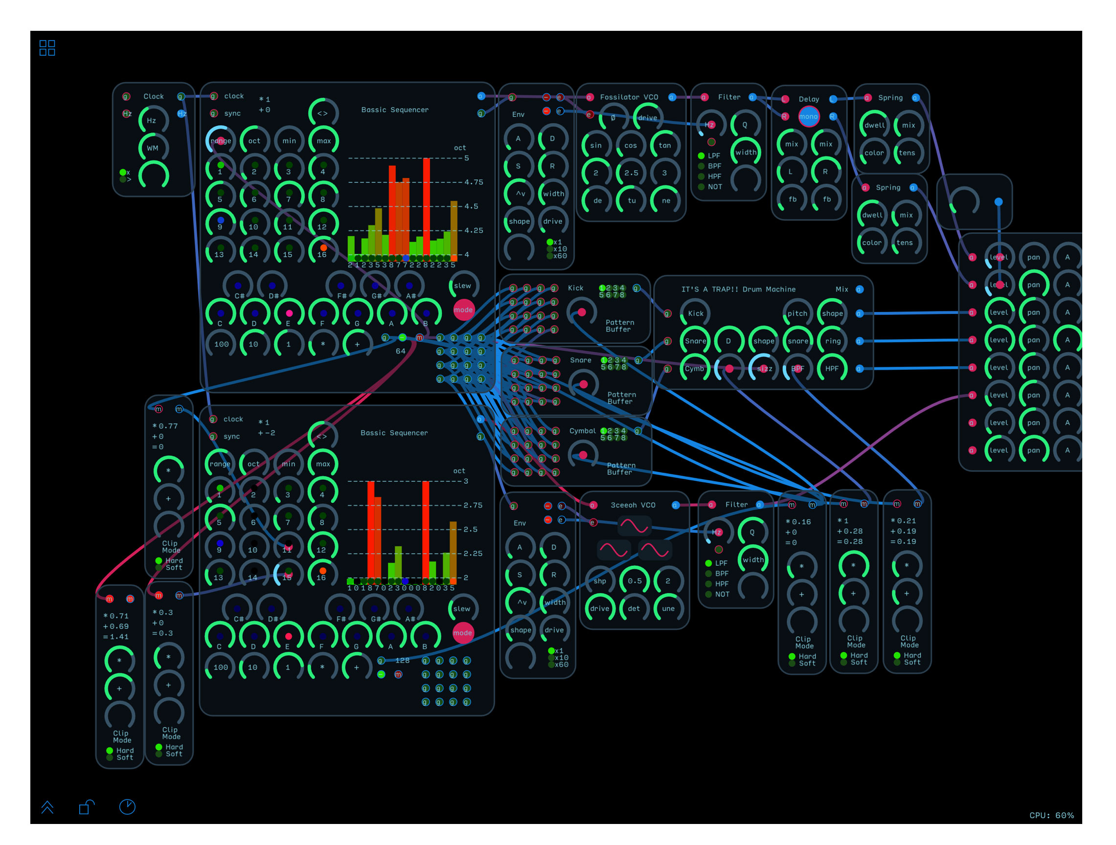 Il concetto del programma ruota intorno ai “nodi”, potenti elementi che è possibile sfruttare in vari modi. Non manca ovviamente la possibilità controllare il software con una tastiera o altro controller MIDI, gestire suoni polifonici, raggruppare nodi, modificare qualsiasi parametro, applicare connessioni dal vivo (durante l’elaborazione audio).