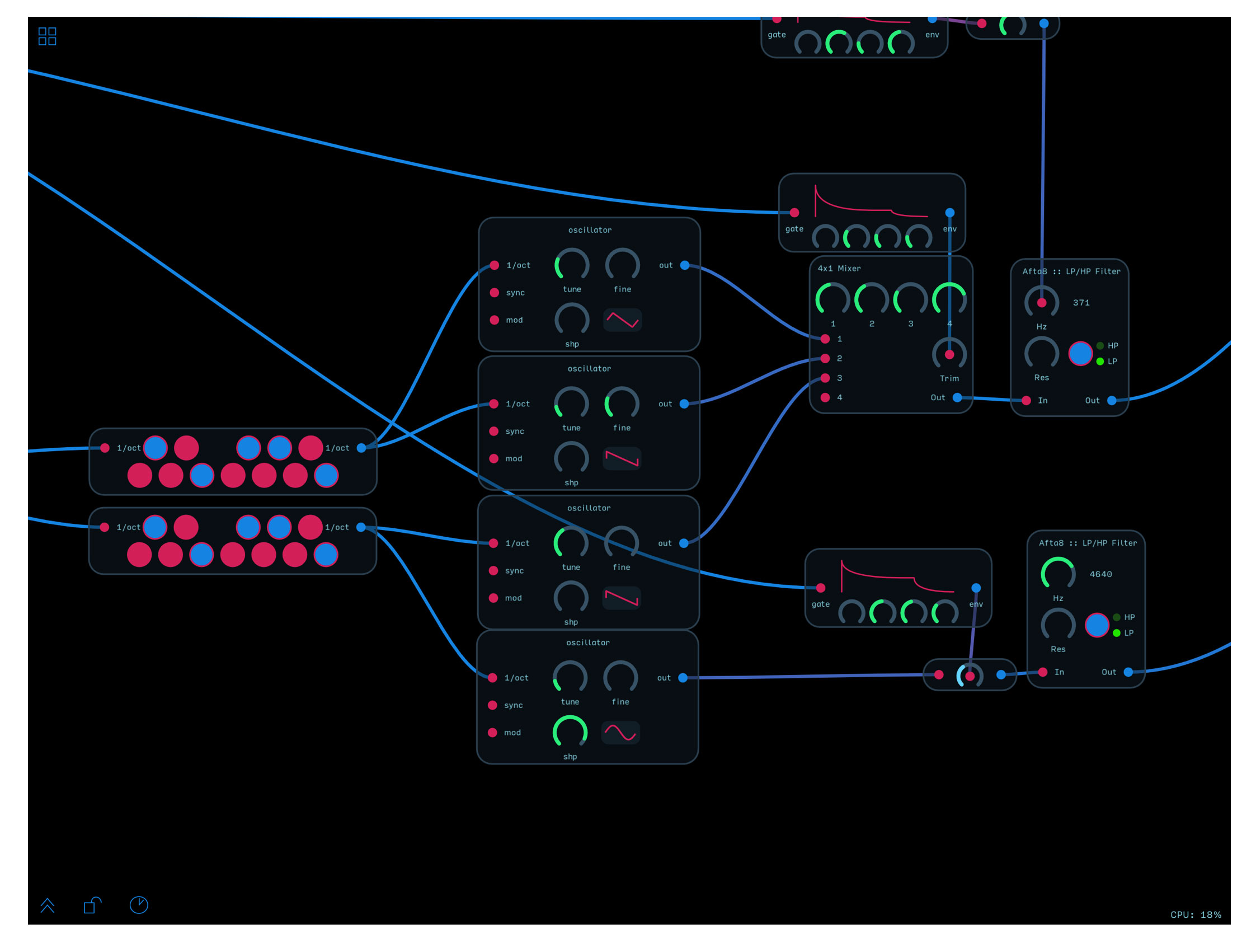 Audulus 3.3.2 è l’ultima release di un’applicazione per Mac minimalista e modulare per l’elaborazione dei file audio. Integra molte delle funzionalità che si trovano normalmente in software più costosi, come ad esempio Reaktor, strumento modulare di Native Instruments che consente di emulare il flusso di lavoro di sistemi di synth e drum rack. È possibile progettare sintetizzatori, nuovi suoni, elaborare audio. Pecualiarità del programma è che è utilizzabile in real-time con bassissima latenza nelle fasi di elaborazione. L’interfaccia è semplice, pulita, di facile uso, permettendo di concentrarsi meglio sui suoni veri e propri.