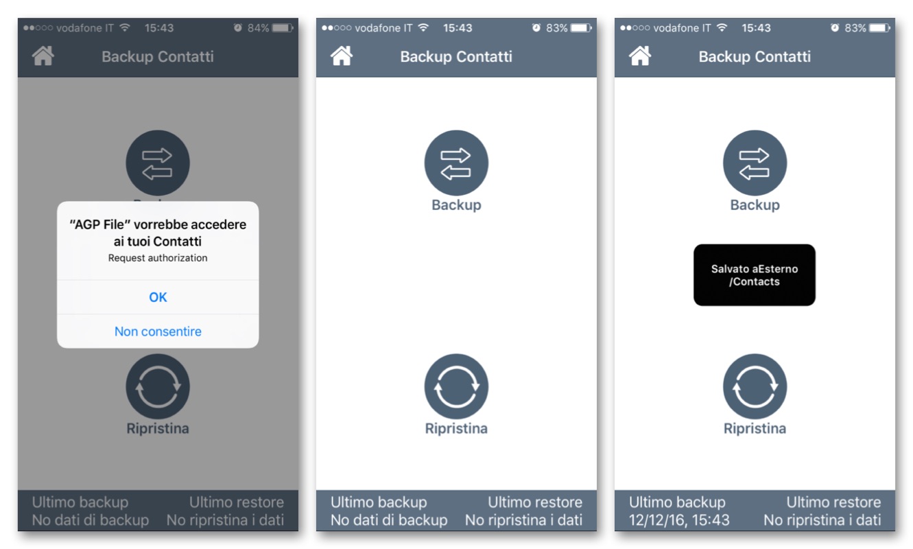 A parte questo, quel che ci ha colpito è la velocità con cui il software collabora con la chiavetta. Di fatto sono stati sufficienti pochi secondi per effettuare un rapido backup di tutto il rullino fotografico che conteneva 42 fotografie. Ottimo anche il *backup dei contatti*: con un click l’applicazione ha effettuato istantaneamente una copia su file vCard di tutta la nostra rubrica (716 contatti).
