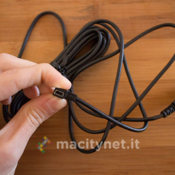 Tornando per un attimo a parlare del cavo di alimentazione, la lunghezza è di 3.20 metri, più che sufficienti per poterlo eventualmente instradare intorno al parabrezza o dove potrebbe essere più congeniale sfruttando le tre clip con adesivo 3M fornite in dotazione.