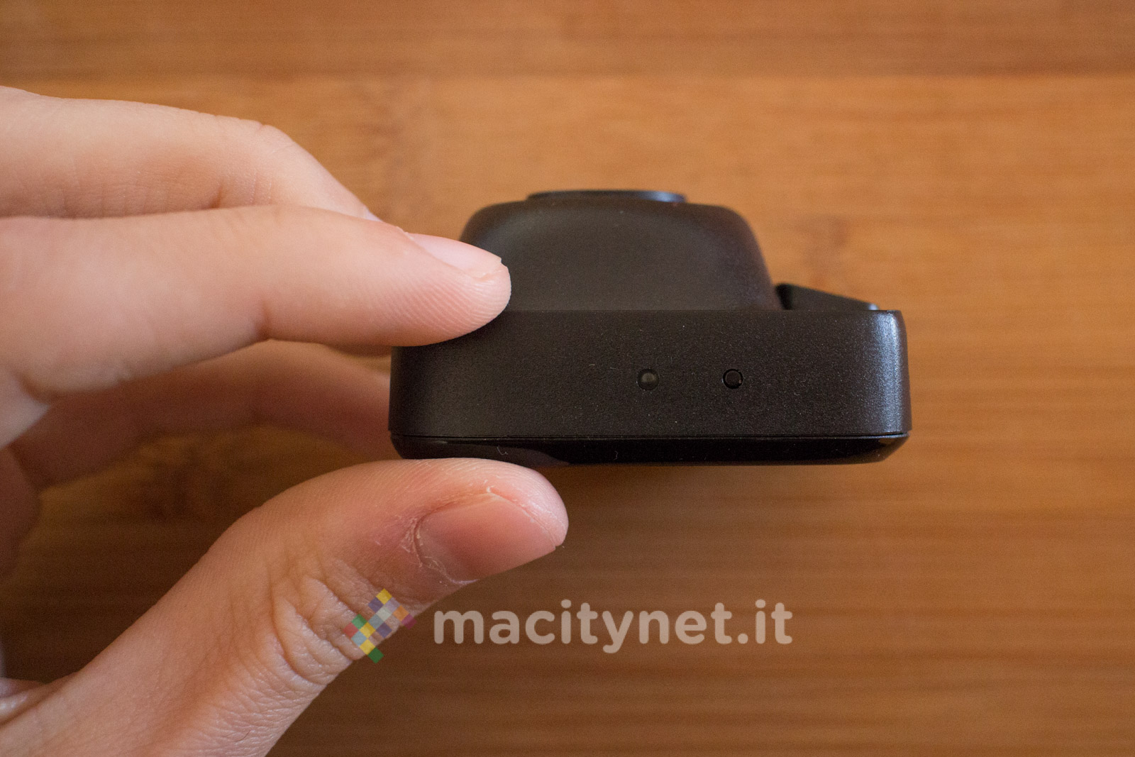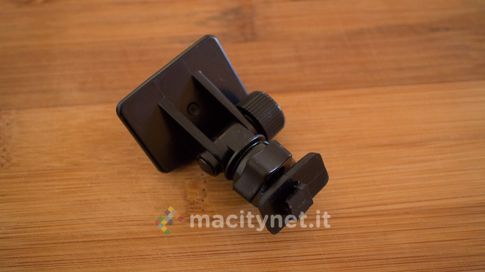 L’aggancio sul parabrezza è garantito dal piccolo supporto a ventosa (con leva a pressione) incluso nella confezione ed al quale si fissa attraverso – purtroppo – un sistema di aggancio proprietario, il che quindi inibisce l’eventuale uso di altri supporti di terze parti: in alternativa è possibile fissarla direttamente sul retro dello specchietto retrovisore – o dove più lo si ritiene opportuno – attraverso un ulteriore supporto con piastra adesiva 3M.