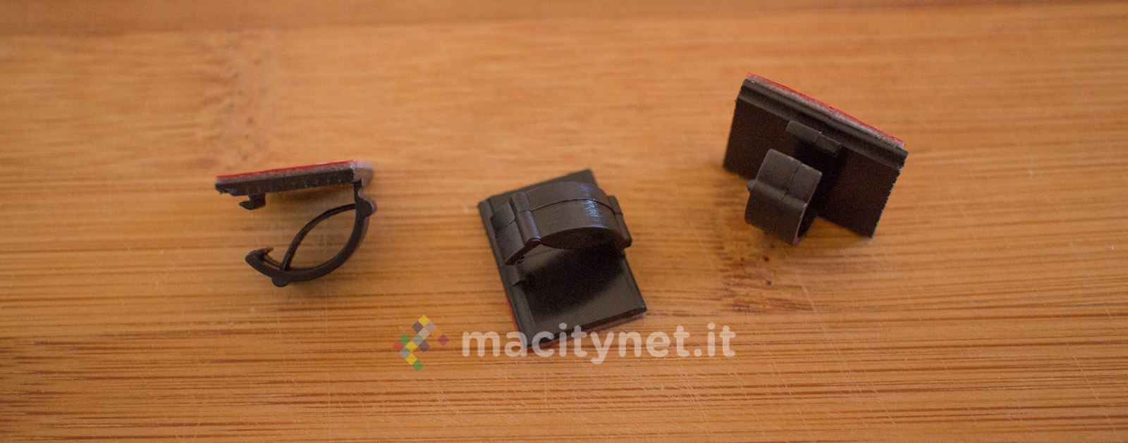Tornando per un attimo a parlare del cavo di alimentazione, la lunghezza è di 3.20 metri, più che sufficienti per poterlo eventualmente instradare intorno al parabrezza o dove potrebbe essere più congeniale sfruttando le tre clip con adesivo 3M fornite in dotazione.