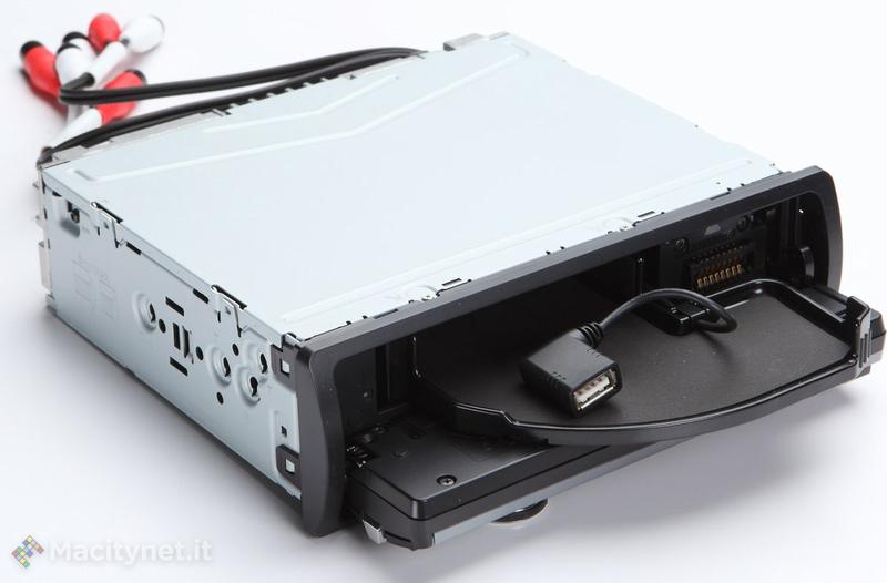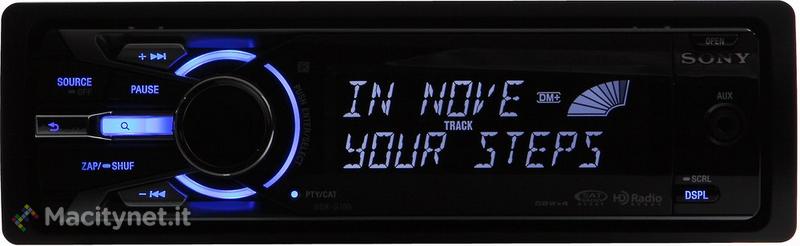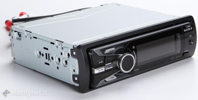 Il dispositivo è il Sony DSX-S100, una radio priva di lettore CD, ma con, appunto, Tune Tray, un’originale soluzione per connettere direttamente e custodire un dispositivo Apple. Si tratta di un vano che si apre e si chiude e al cui interno si può collocare, collegato attraverso un dock, un iPod o un iPhone. Una volta collocato, il dispositivo (oltre che essere ricaricato) si controlla attraverso i tasti e i pomelli della radio senza più avere alcun contatto con il tascabile Apple che resta al sicuro.