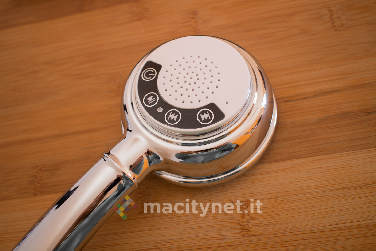 Per chi tiene il soffione costantemente agganciato all’asta, i tasti per la gestione della riproduzione musicale saranno l’unica nota negativa di questo prodotto in quanto, in quest’ottica, si trovano in una posizione tutt’altro che pratica. Ci si può tuttavia passare sopra se l’intento è quello di ascoltare soltanto i brani di un album o di un artista in modalità casuale o ancora se prima di infilarsi sotto la doccia si compone una playlist ad hoc per il momento.