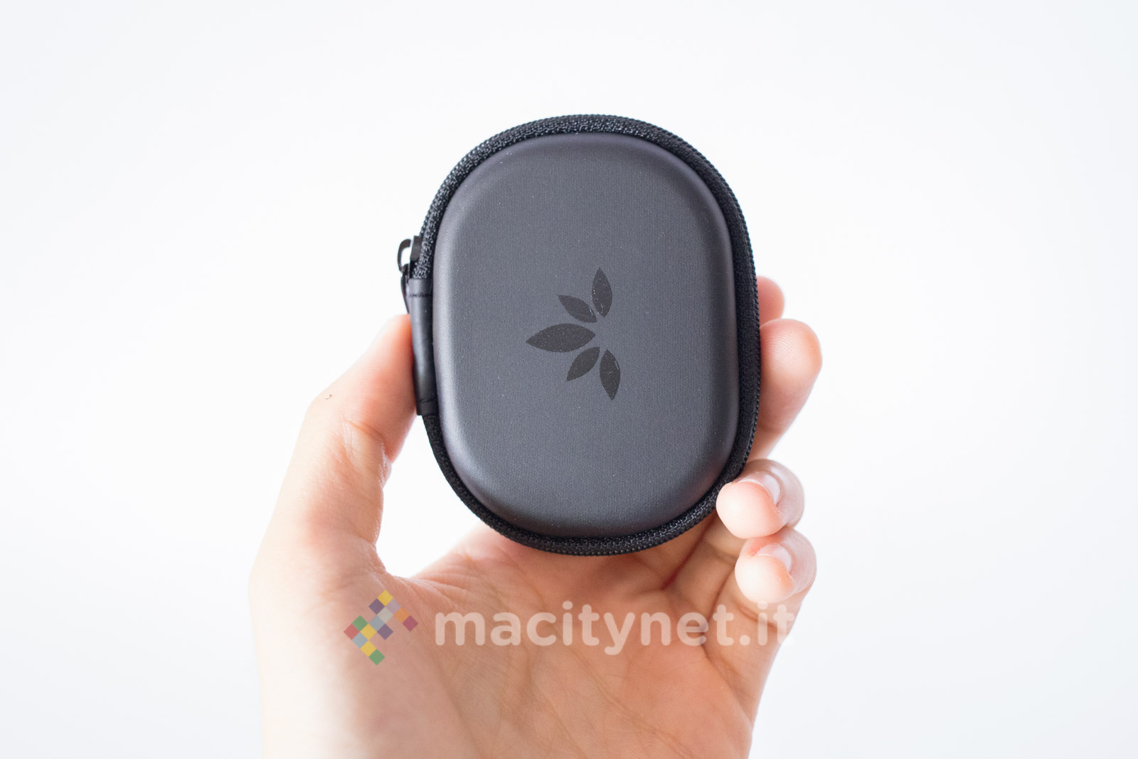 Qui c’è allegata anche una pratica custodia per riporlo dopo l’uso: trattandosi di un oggetto molto piccolo è altrettanto facile da perdere, inoltre il cavetto per la ricarica non usando il più comune attacco microUSB dovrà essere sempre con noi per permetterci di ricaricarlo in macchina o in generale nel momento in cui se ne presenta la necessità. La piccola custodia a conchiglia risolve entrambi i problemi, permettendoci di proteggerlo, di non perderlo e di avere il cavetto a portata di mano.