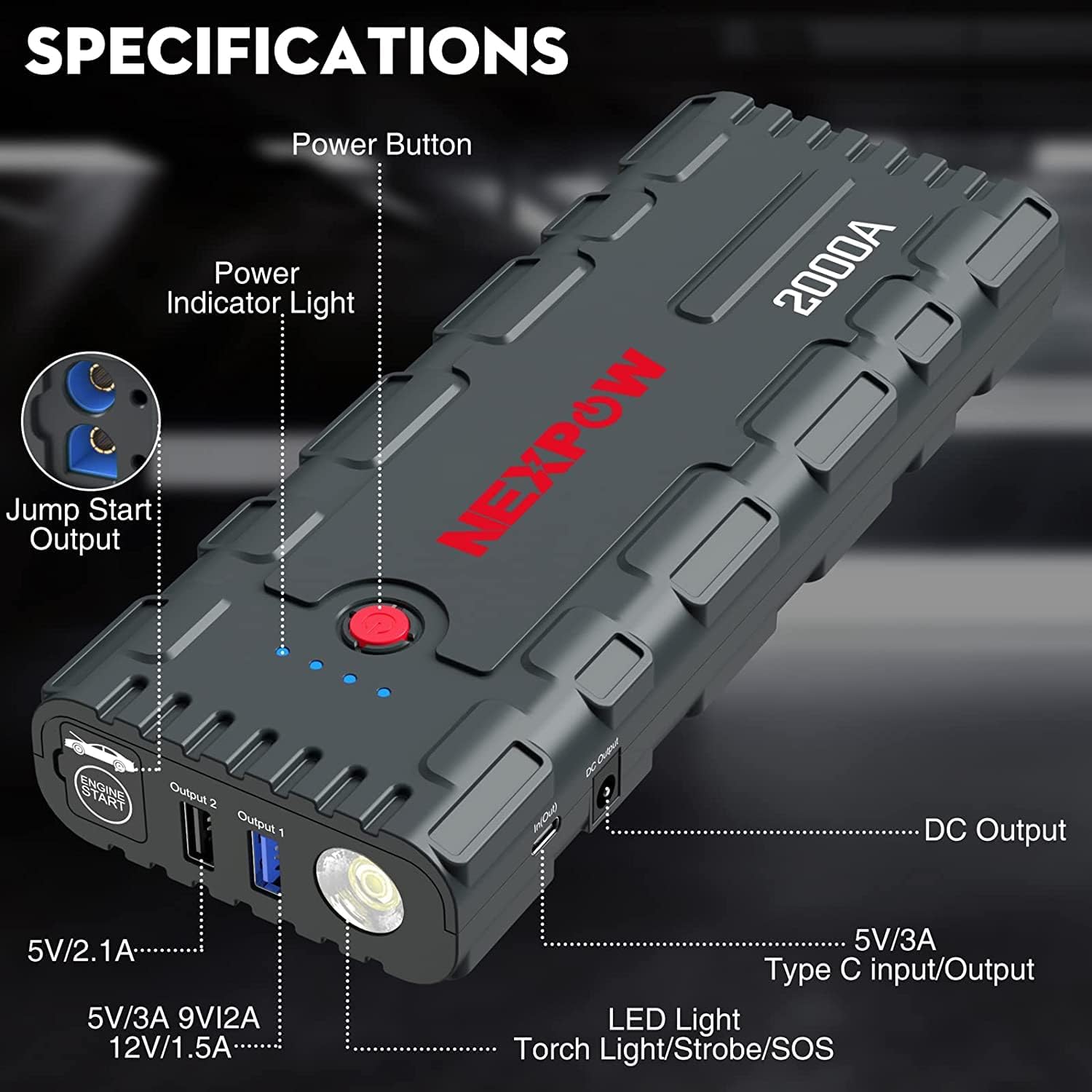 Compatibile con la maggior parte dei veicoli a 12V, motori a benzina fino a 7,5 litri e diesel fino a 6,0 litri, l’avviatore NEXPOW è adatto non solo per automobili, ma anche per camion, moto, trattori e tosaerba. Funziona anche in condizioni climatiche difficili, con piena operatività tra -20°C e +60°C. Grazie alla valigetta inclusa, può essere trasportato e riposto facilmente nel bagagliaio, diventando un accessorio utile per la sicurezza in viaggio o nei tragitti quotidiani..