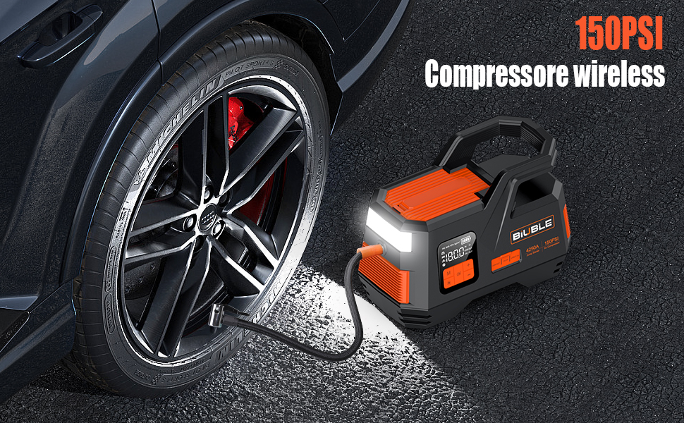 Il Biuble JS006 funziona anche come compressore. Può gonfiare 4 pneumatici da 0 a 35 PSI o da 25 a 36 PSI per circa 12 volte a piena carica. In funzione compressore ha una capacità massima fino a 150 PSI per diversi tipi di pneumatici, con un gonfiaggio continuo per oltre 15 minuti dopo i quali, oppure per evitare di andare oltre soglia di temperatura, si spegne da solo.
