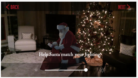 Una volta scelta la scena, Kringl vi chiederà di filmare il luogo che farà da sfondo: potete scegliere il vostro salotto, la cameretta dei bambini, la cucina o l’ingresso: sarà il luogo in cui i piccoli vedranno comparite nel filmato Babbo Natale. Per rendere più realistica l’immagine e non destare sospetti nei nativi digitali che la sanno più lunga degli adulti in materia di iPhone e iPad, Kringl permette all’utente di modificare la luminosità della figura di Babbo Natale e di verificare di aver filmato la vostra stanza con la giusta prospettiva.