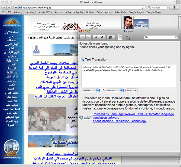 Nei giorni scorsi abbiamo parlato diffusamente di Babylon [sponsor], il software di traduzione per Mac capace di darci una grossa mano quando si tratta di interpretare testi scritti in lingua straniera. Ora si tratta di vedere nel dettaglio come si installa, come funziona e come ci può venire in contro quando si ha una pagina Web da scorrere, magari in un idioma non troppo usuale come Arabo, Giapponese, Cinese o qualche lingua orientale o scritta con caratteri non latini.