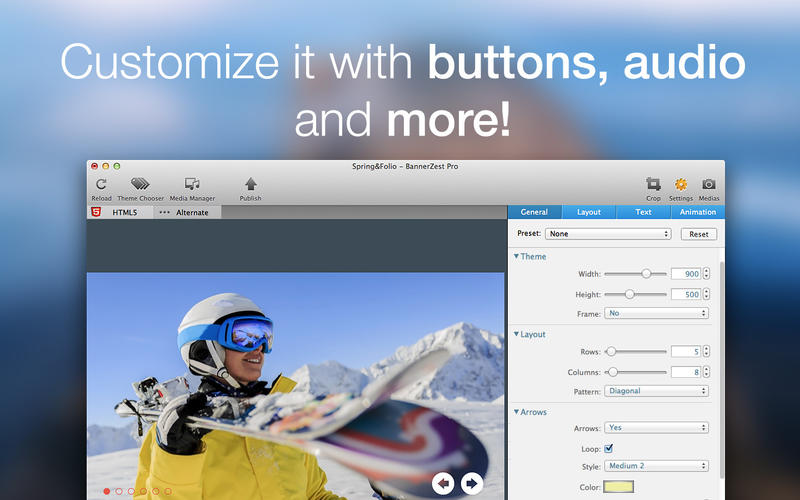 Non aggiornato da qualche tempo, torna sul Mac App Store BannerZest, software molto interessante e ben fatto che permette di creare in modo molto semplice banner di varie dimensioni con slideshow visualizzabili in HTML5, e dunque sia da computer desktop, sia da dispositivi mobile. L’applicazione mette a disposizione di serie più di 30 temi animati da quali partire, integra funzioni per l’editing delle immagini, consente di aggiungere musica ed effetti sonori, offre funzioni per l’esportazione su FTP, Dropbox o cartelle locali e funzioni che consentono di incorporare le animazioni create in qualunque sito.