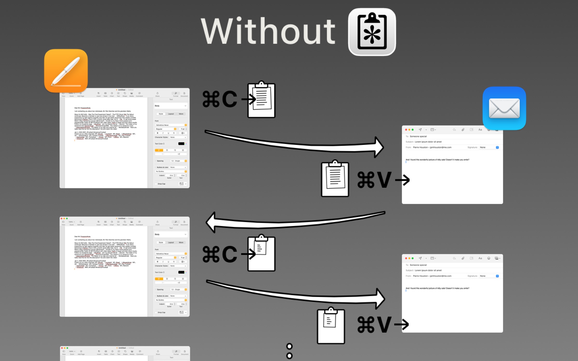 Tutto questo può diventare già noioso e ripetitivo senza un clipboard manager come Clipy, CopyClip o Copied, che vi permette di abilitare una sorta di cronologia di tutti i contenuti copiati di volta in volta negli appunti del Mac.
