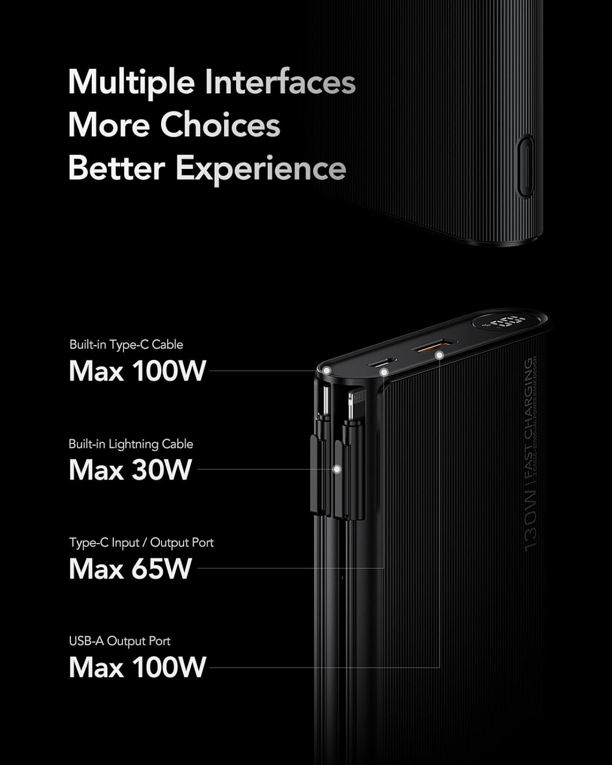 Il principale è che si tratta della prima batteria con cavo a nostra conoscenza che, come accennato, veramente “plug and play” capace di ricaricare un portatile. In pratica ve la mettete nella borsa e la collegate direttamente alla porta USB-C alla quale potrà fornire ben 100W.