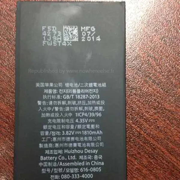 La prima foto della presunta batteria iPhone 6 conferma quanto temuto nell’ultima settimana: solo un modesto incremento rispetto alla capacità della batteria di iPhone 5s. Ricordiamo infatti che negli scorsi giorni erano emerse anticipazioni secondo cui la batteria del prossimo iPhone 6 avrà una capacità compresa tra 1.800 e 1.900 mAh, un valore piuttosto contenuto nel panorama attuale degli smartphone in cui la capacità media è uguale ma solitamente superiore ai 2.000 mAh. La nuova foto riportata da Nowhereelse offre un primo sguardo ravvicinato alla diciture tecniche e legali stampigliate su quella che è potrebbe essere la batteria del prossimo iPhone 6: la capacità indicata è di 1.810 mAh, pari a un incremento del 16% rispetto ai 1.560 mAh di iPhone 5s.