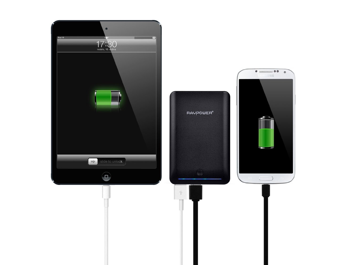 Se non avete intenzione di ricaricare un iPad, potete optare per un modello leggermente più piccolo potete optare per la RAVPower da 10.400 mAh che garantisce cinque ricariche per iPhone 5S e tre ricariche per Galaxy S4. Anche questo modello ha due uscite USB per ricaricare fino a due dispositivi contemporaneamente e viene venduta su Amazon in offerta a 31,99 euro, ma con il codice OANUPO3H costa solo 27,19 euro.