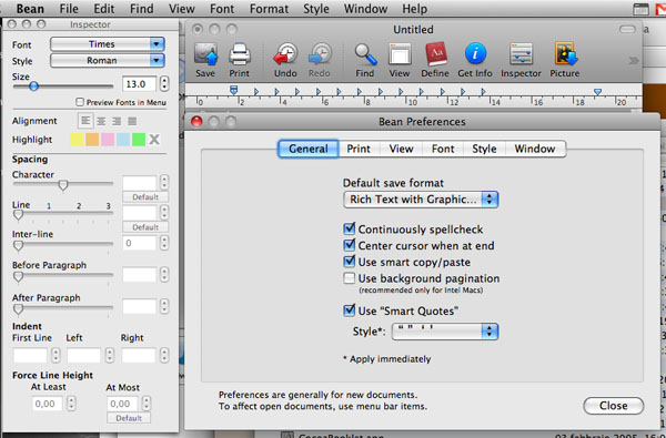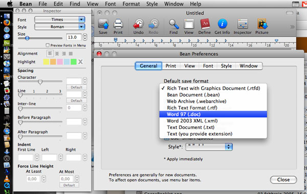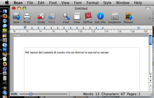 Bean è un Word Processor, o meglio, un Rich Text Editor leggerissimo ( il download pesa poco più di 3,7 MB) per Mac OS X scritto interamente in Cocoa ed è un prodotto Open Source e gratuito.
