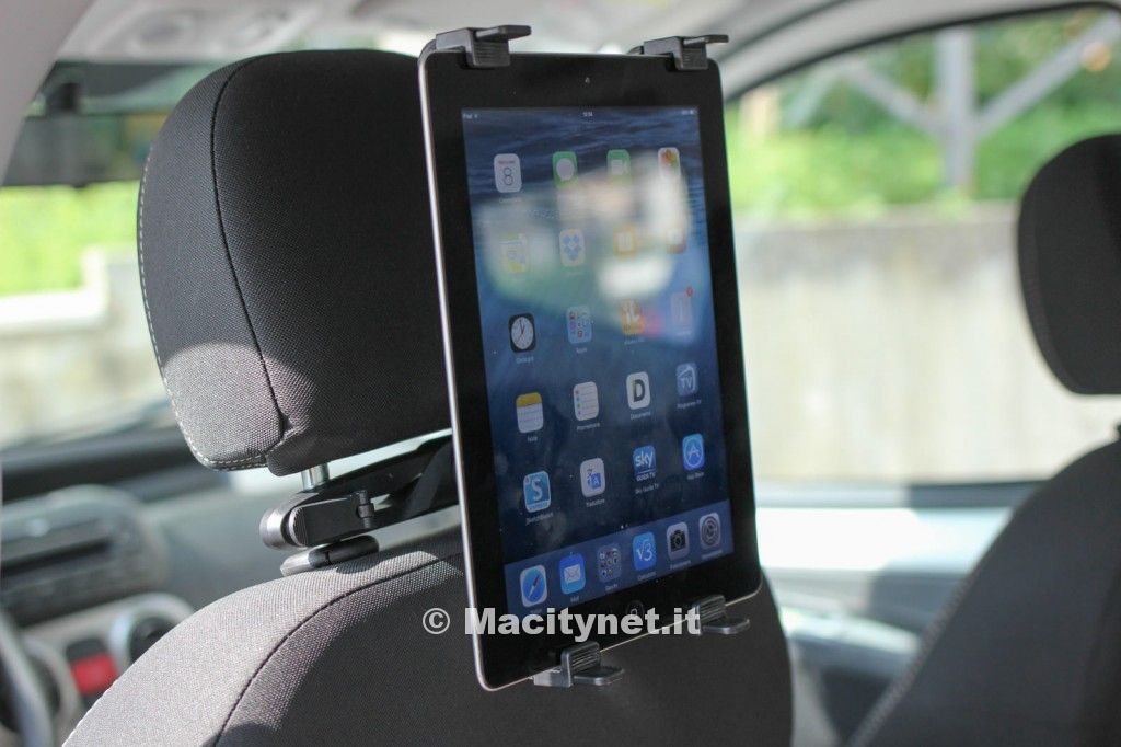 L’iPad in auto può risultare molto utile per intrattenere i bambini magari durante un lungo viaggio specialmente con i più piccoli che, guardando un cartone animato, riescono a stare buoni anche per diverse ore. Chi sta ancora sul seggiolino è troppo piccolo per riuscire a tenerlo in mano. Lo troviamo su Amazon venduto e spedito da DigitalBay al prezzo di 10,90 euro ai quali vanno aggiunti 3 euro per le spese di spedizione. Composto in sole due parti in plastica molto rigida di buona qualità, una va agganciata al poggiatesta dell’automobile, l’altra è una sorta di morsa per tablet che si fissa al tablet e si aggancia alla prima: il tutto, in pochi secondi.