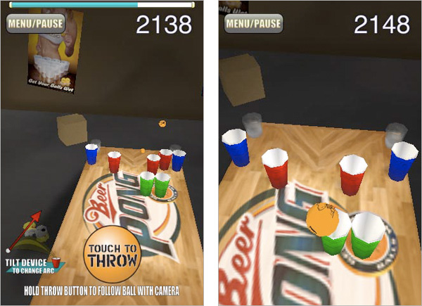 Gli spot pubbliciari all’interno del gioco non annoiano il giocatore con fastidiose schermate attraverso le quali occorre passare prima di giocare. Gli sviluppatori hanno integrato gli spot in modo intelligente direttamente all’interno dell’azione di gioco con bicchieri, palle, tavolo di gioco e poster posizionati sulle pareti virtuali che riportano il logo di Beer Pong il set di gioco da tavolo a base di bicchieri per la birra e palline che sta furoreggiando nei pub statunitensi e non solo.