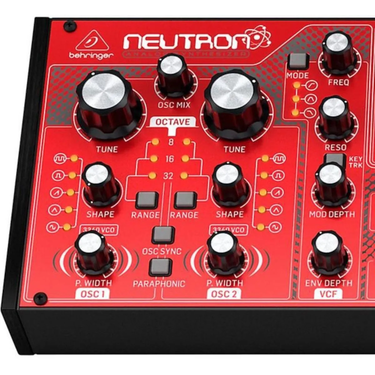 Behringer ha presentato Neutron, un sintetizzatore monofonico analogico capace di funzionare come macchina stand-alone o che può essere al contempo integrato in un sistema modulare Eurorack. I comandi sono sufficientemente spaziati e per questo non è piccolissimo: il case table-top ha formato standard Euro con larghezza pari a 84 HP, superiore quindi al Model D di Berhinger (70 HP) e al Moog Mother 32 (60 HP).