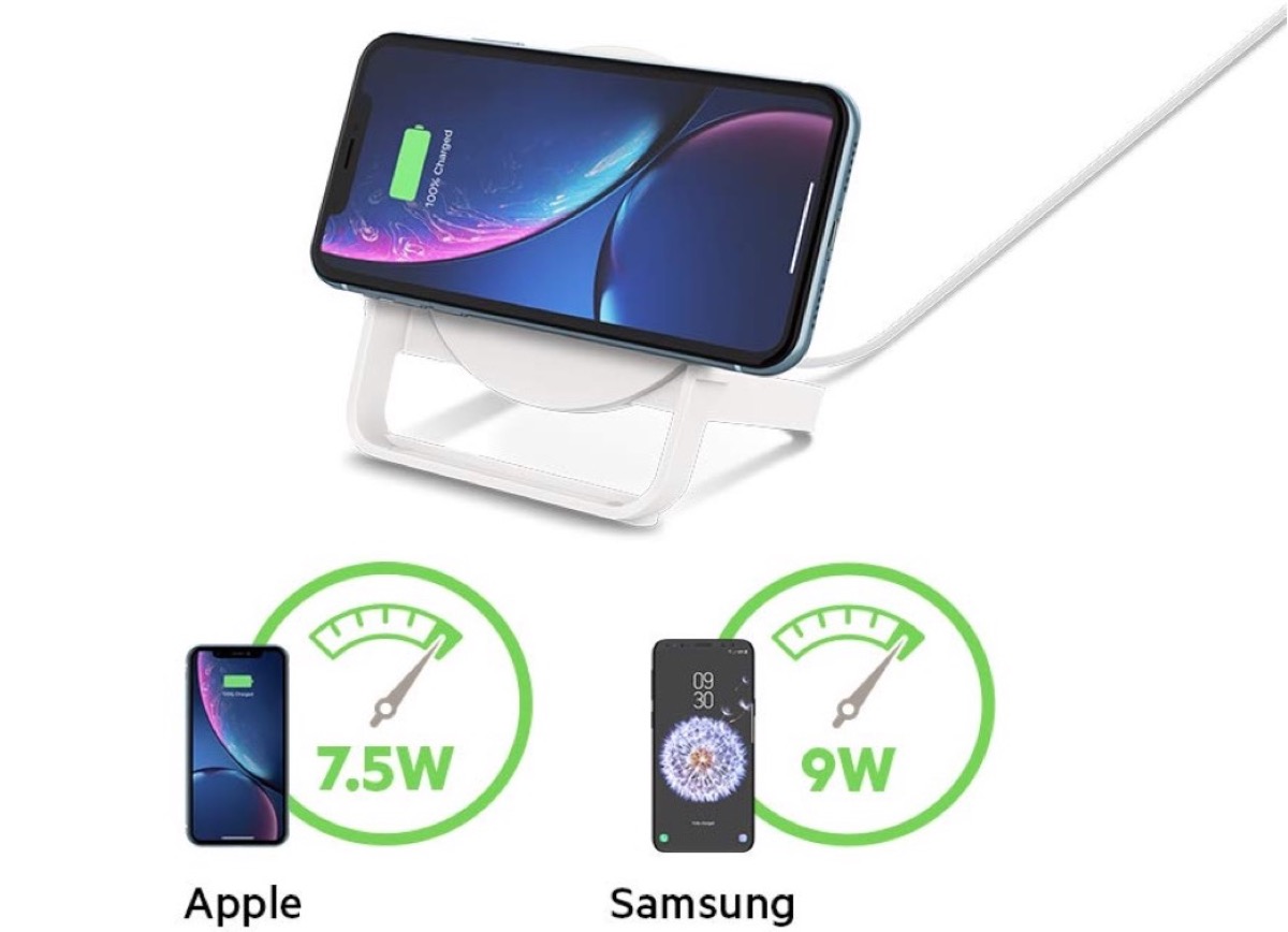 La particolare conformazione di quest’ultimo consente di poggiare il dorso dello smartphone sulla superficie di ricarica mantenendo il telefono inclinato in verticale, quindi per poter leggere comodamente le notifiche a schermo bloccato, ma anche in orizzontale, sfruttando così la comodità della ricarica wireless durante la visione di un filmato.