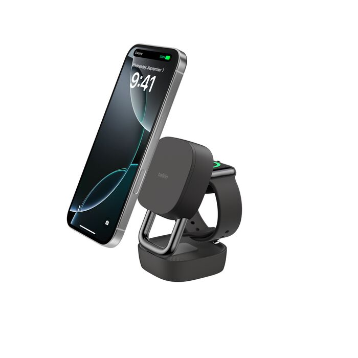 Il design convertibile permette di usarlo sia come base piatta sia come supporto da tavolo, mentre la struttura pieghevole lo rende adatto al trasporto. Belkin ha lavorato su allineamento magnetico e gestione termica per garantire una ricarica stabile anche a potenze elevate. Nella confezione sono inclusi alimentatore USB-C da 45 W e cavo da 1,5 metri.