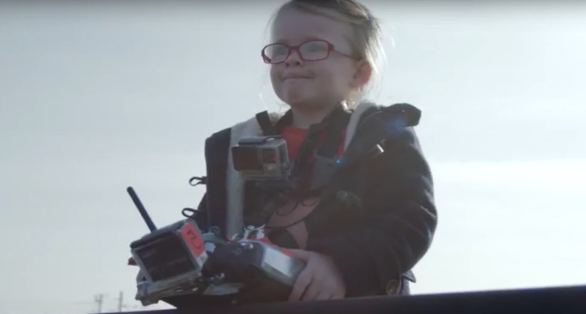 Si tratta senza dubbio di una delle trovate pubblicitarie più originali e devastanti degli ultimi anni e, a nostro giudizio, perfettamente riuscita: non sorprende che sia riportata da Engadget. Il povero Volvo FMX viene colpito da carichi sospesi, si ribalta completamente per poi riprendersi praticamente senza un graffio, ma è tutta colpa di un drone, fino al gran finale dove esce per forza di cose un po’ ammaccato ma ancora in grado di muoversi e di lavorare. Brava Sophie! Intere generazioni di bambini ti invidieranno questa esperienza. Impagabile l’espressione degli osservatori e dei tecnici alle spalle della bimba.