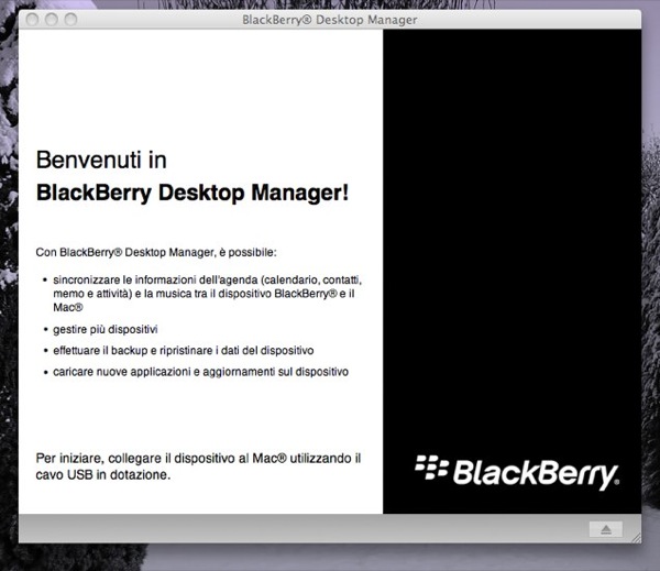 Il primo passo per sfruttare la suite desktop di RIM è scaricare il software dall’apposito indirizzo, nella versione dedicata ai Mac.