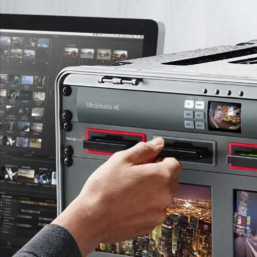 Blackmagic MultiDock è un rack compatto che permette di sfruttare 4 unità SSD via Thunderbolt; è una soluzione comoda che permette di eseguire l’editing diretto da questi dischi, senza bisogno di copiare prima il materiale su HD o altre unità SSD: la velocità di Thunderbolt permette di applicare tutte le modifiche desiderate senza problemi. Il Multidock può essere usato anche come disk array, aggiungendo nuovi dischi e sfruttando le funzionalità di sistema per la creazione di striping (il partizionamento dei dati in segmenti di uguale lunghezza scritti su dischi differenti). Il dispositivo non richiede installazione: tutto quando serve è già integrato nei Mac che supportano Thunderbolt. Le 4 unità SSD da 2,5,” possono funzionare in modo indipendente, “montate” e “smontate” dal sistema quando si desidera e il produttore consiglia il sistema in abbinamento alla Blackmagic Cinema Camera, alla Blackmagic Production Camera 4K, così come in accoppiata al registratore video SSD HyperDeck Studio.