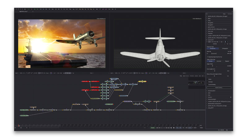 L’interfacia con con struttura a nodi permette di creare effetti speciali sofisticati. I nodi sono piccole icone che rappresentano effetti, filtri e altre operazioni di elaborazione dell’immagine. Questi si possono combinare in tanti modi per creare effetti illimitati. I nodi sono organizzati come un diagramma, permettendo di trovare, selezionare e spostare le varie tracce, filtri, ed effetti facilmente. A differenza delle applicazioni a cronologia, l’applicazione di Blackmagic permette di visualizzare, creare e modificare qualsiasi parte del progetto cliccando su un nodo.