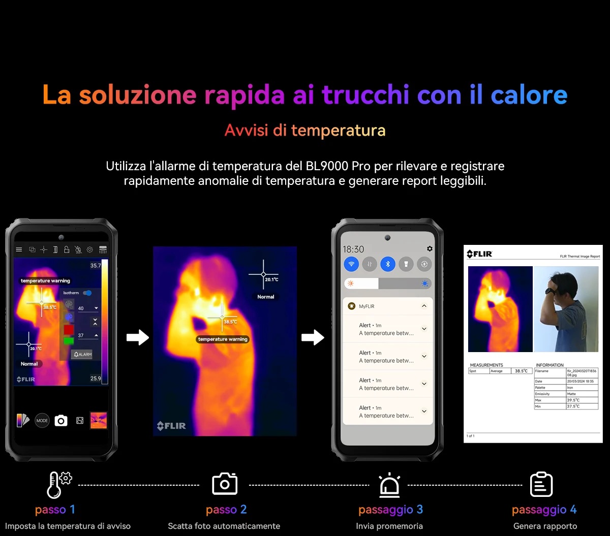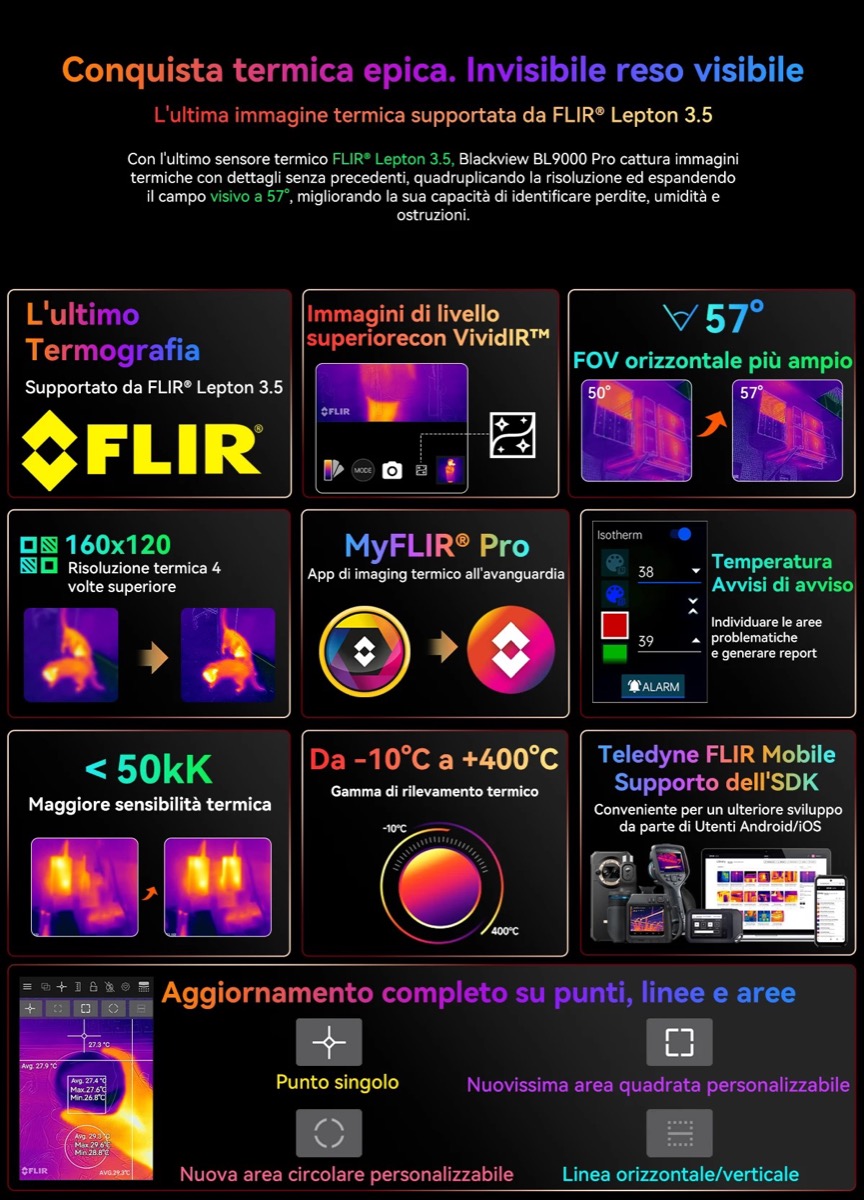 Il BL9000 Pro è dotato dell’ultimo sensore termico FLIR® Lepton 3.5, notifiche sulla temperatura, modalità picture-in-picture, app MyFLIR Pro e supporto esclusivo per il kit di sviluppo mobile Teledyne FLIR: con tali premesse, il BL9000 Pro mira a fornire agli utenti livelli più elevati di sicurezza, comodità, comfort e un ottimo rapporto qualità prezzo.