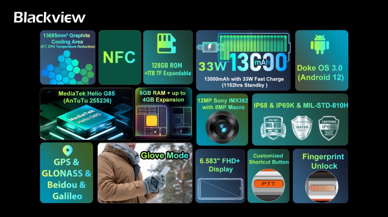Per l’occasione l’azienda ha presentato anche tre nuovi telefoni: il Blackview BV7100, con una batteria da 13.000 mAh; il Blackview BV5200, dotato di fotocamera ArcSoft; per finire OSCAL C80, con schermo a 90 Hz, fotocamera da 50 MP e batteria da 5.180 mAh.