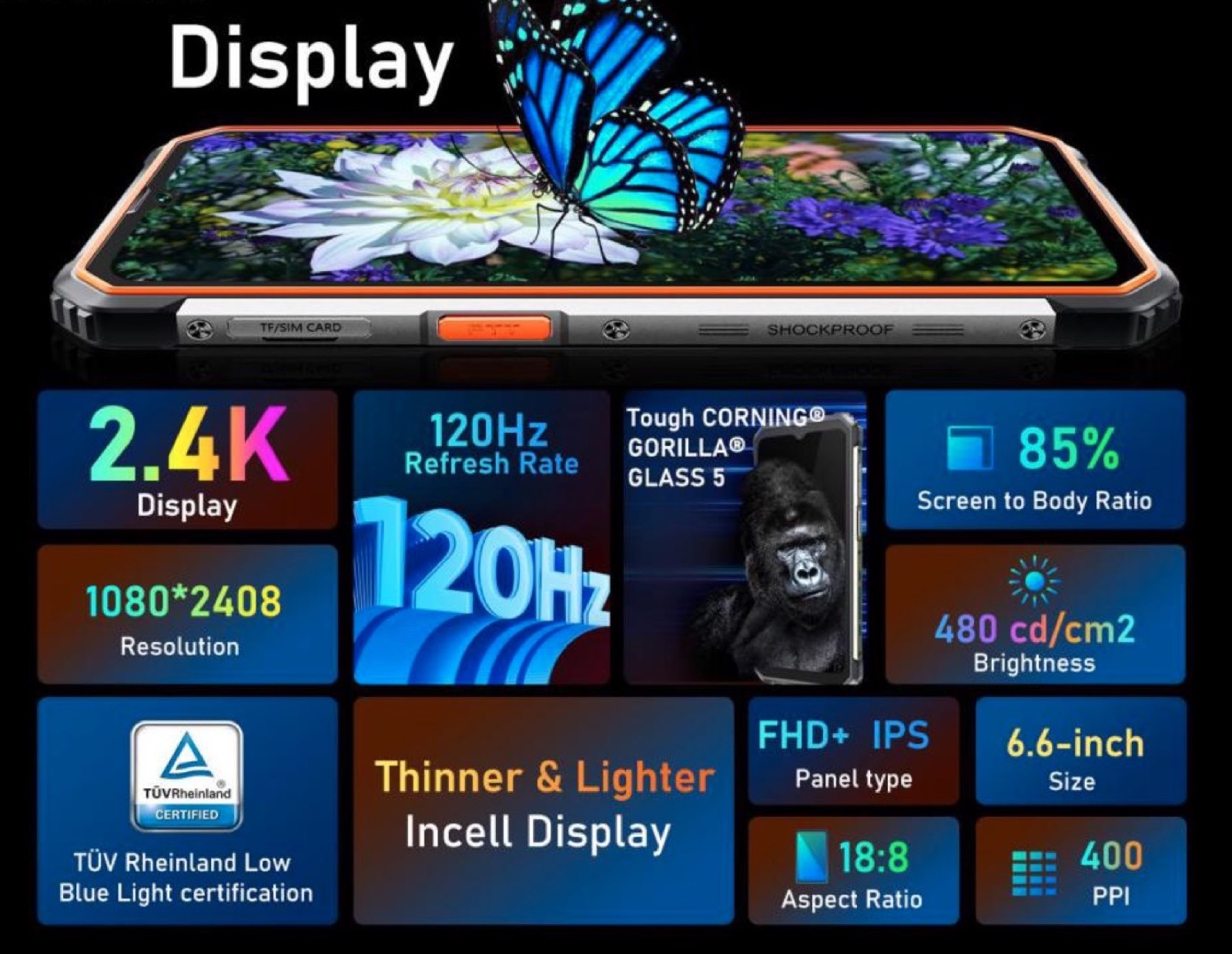 Monta un pannello da 6,6 pollici con risoluzione 2,4 K e frequenza di aggiornamento a 120 Hz, garantendo quindi un’elevata fluidità anche coi videogiochi. È anche certificato TÜV Rheinland Low Blue Light, ovvero riduce la luce blu, ed è protetto da una copertura in vetro Corning Gorilla Glass 5 Tough che promette resistenza a graffi e cadute fino a 1,2 metri di altezza.