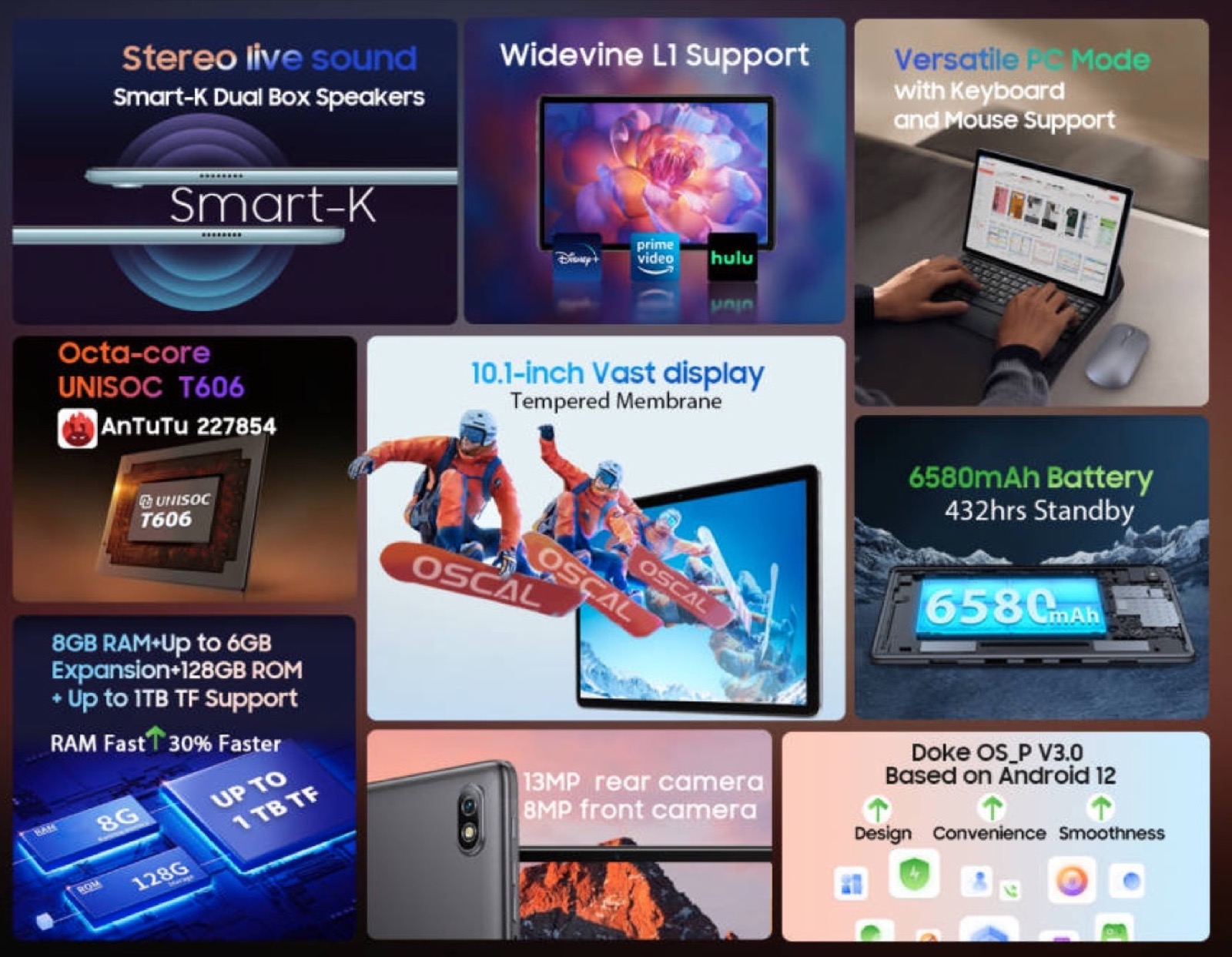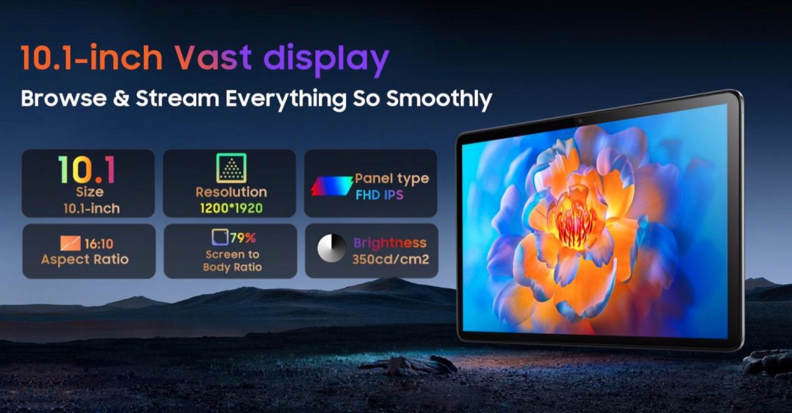 Il tablet si chiama Blackview Pad 10, monta uno schermo da 10.1″, batteria da 6.580 mAh, 8 GB di RAM e 128 GB di capacità, con interfaccia Android DokeOS 3.0 e altoparlanti Smart-K Dual Box: è spesso 8,9 millimetri e pesa 536 grammi.