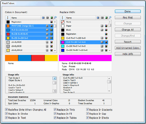 Interessanti anche gli strumenti per eseguire ricerche nei parametri di tracking e kerning, fare ricerche nei frame vuoti, tra gli appunti, tra gli elementi non stampabili, i caratteri invisibili, le pagine vuote; è possibile compiere ricerche anche tra gli stili che presentano font non installati nel sistema.Uno dei plug-in è dedicato alle “frazioni” e permette operazioni di trova & sostituisci “intelligenti”, riconoscendo caratteri quali “1/2”, “1/4” e così via, anche se utilizzano caratteri OpenType e glifi, ecc.