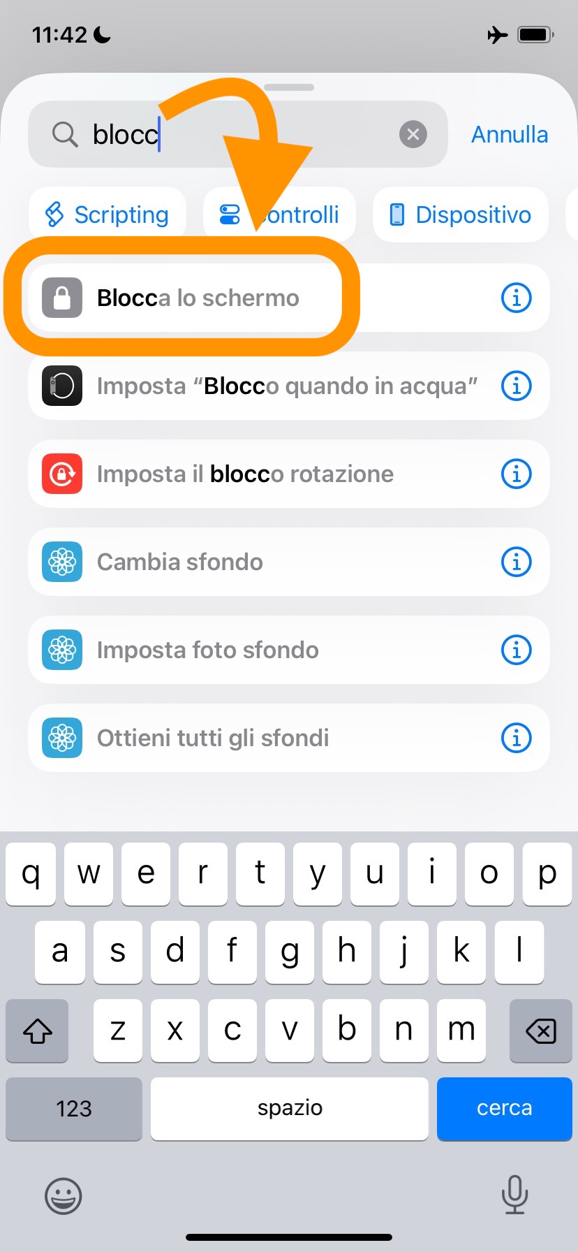 - Digitate Blocca lo schermo nella barra di ricerca, quindi cliccate sull’apposita voce;