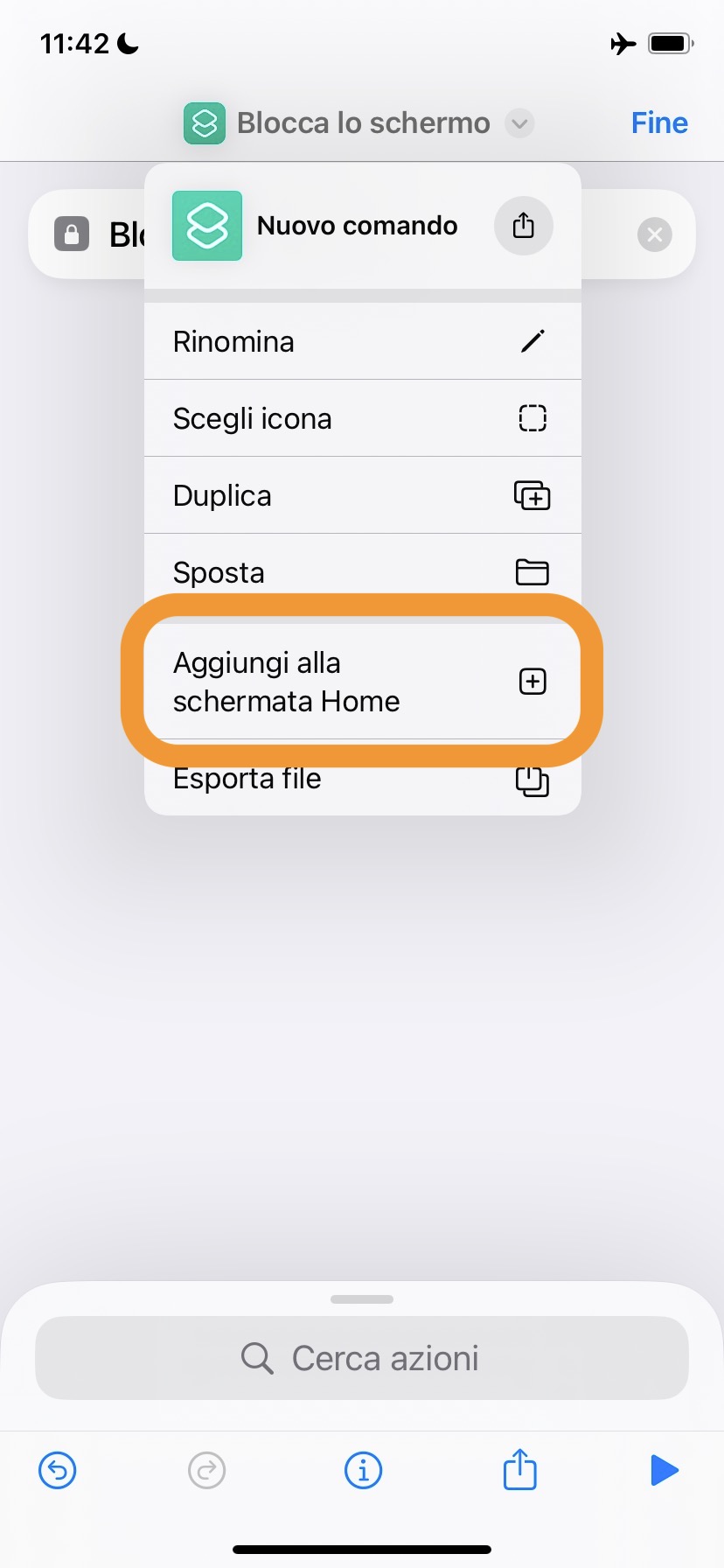 - Cliccate sulla freccina affianco al nome della funzione in alto, quindi cliccate su Aggiungi alla schermata Home;