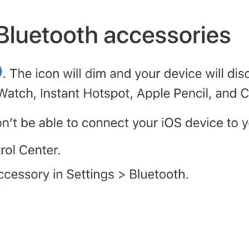 Apple dice anche che «Se il Bluetooth è spento, non sarà possibile connettere il dispositivo iOS agli accessori Bluetooth» finché non sarà riattivato dal Centro di Controllo, finché non sarà collegato manualmente dal pannello Impostazioni > Bluetooth, finché non saranno le 5 AM ora locale (?) o finché non sarà riavviato il dispositivo.