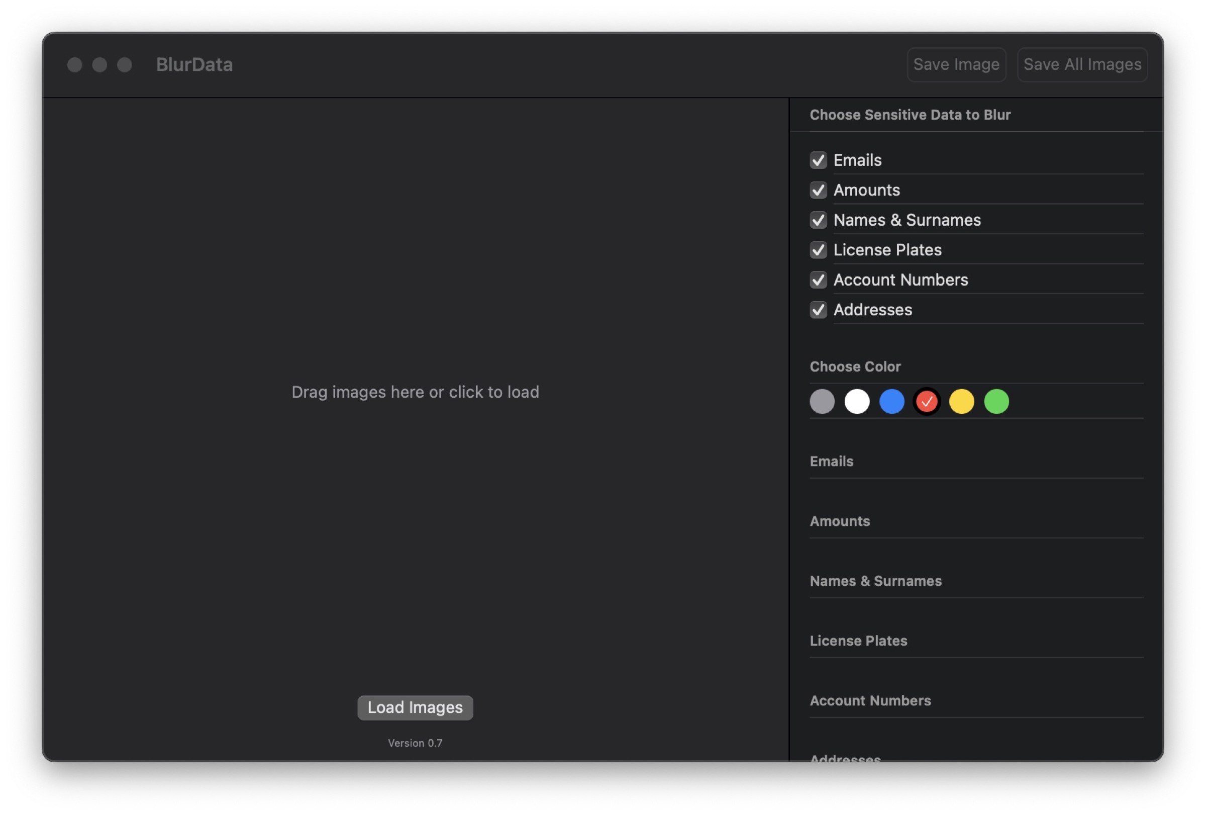 BlurData è compatibile con macOS 13 e versioni successive. Come dicevamo supporta i formati di immagine più comuni come JPG e PNG, oltre ai PDF.