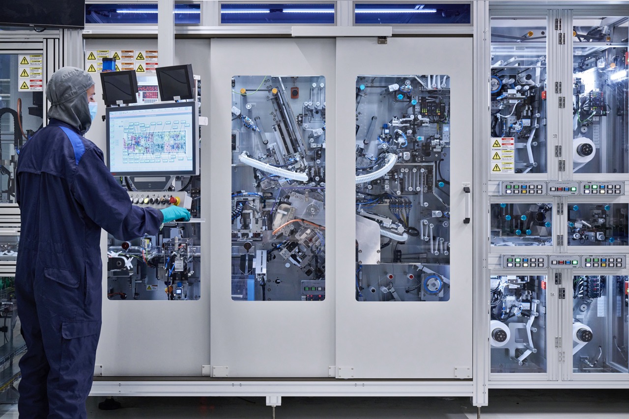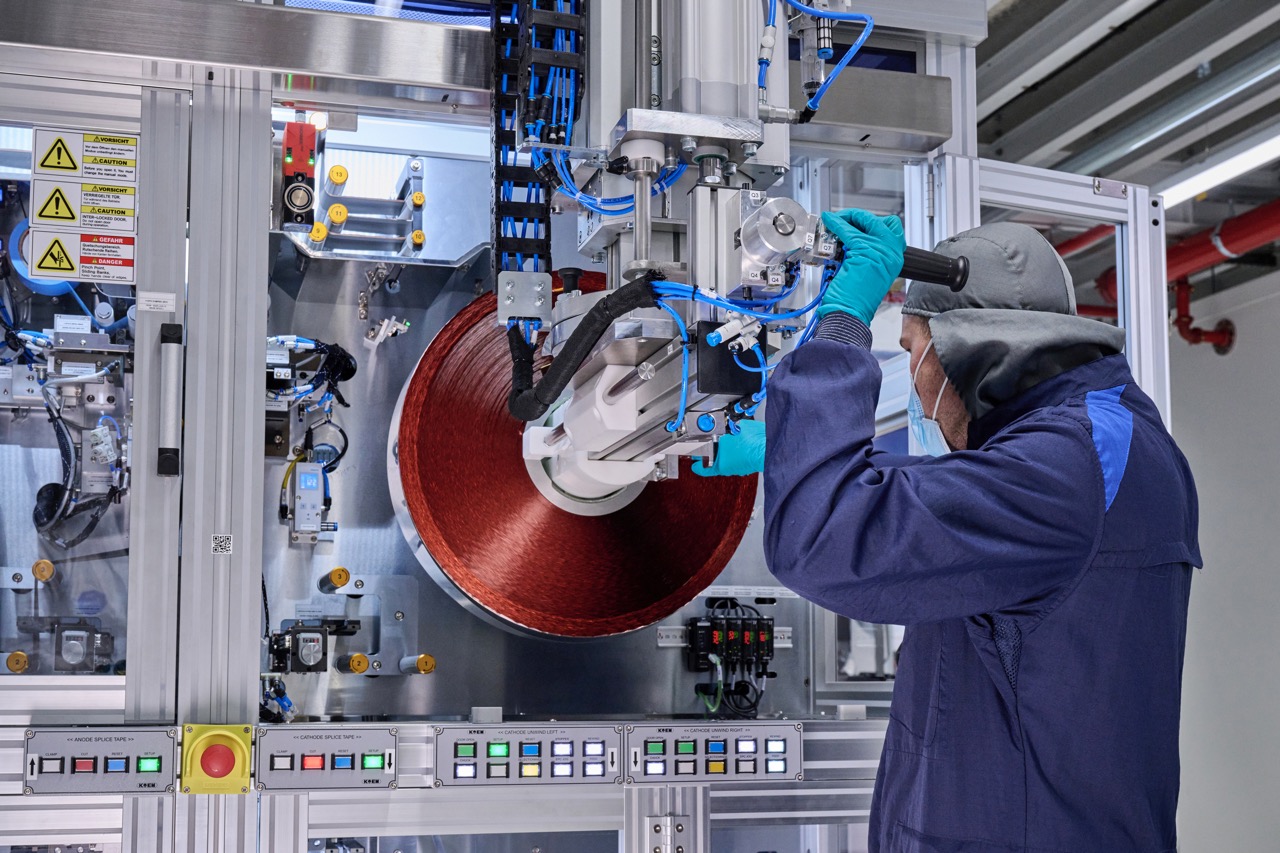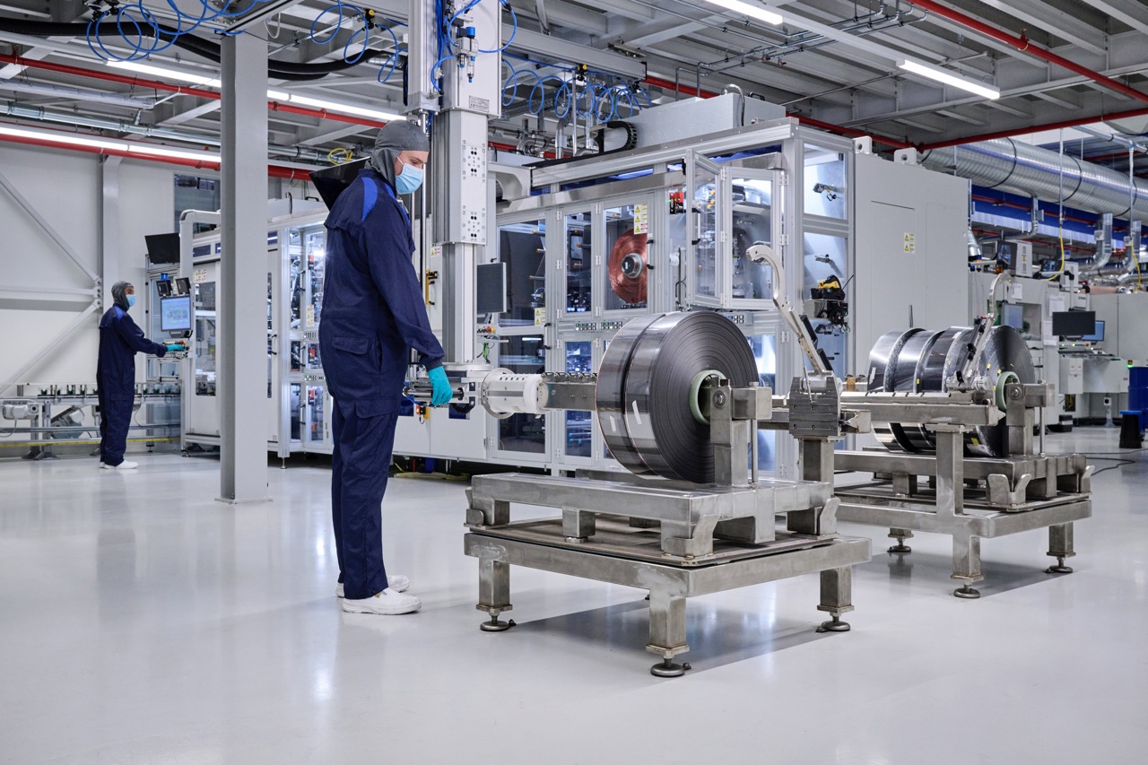 È richiesto il massimo livello di precisione: la lamina ha uno spessore di pochi micrometri – in altre parole, più sottile dei fili di una ragnatela – e anche il rivestimento è dell’ordine dei micrometri. Durante l’assemblaggio delle celle, le lamine rivestite, chiamate elettrodi calandrati, vengono avvolte in cosiddetti “rotoli di gelatina” utilizzando un separatore e inserite nell’alloggiamento della cella. Le celle vengono riempite di elettrolita, quindi caricate per la prima volta e infine controllate per verificarne la funzionalità e la qualità.