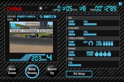 Ricordiamo infine che direttamente all’interno del gioco è possibile acquistare al prezzo di 79 centesimi una interessante espansione che permette di affrontare i vari gran premi nei panni dell’ingegnere di corsa. In questa modalità possiamo scegliere l’assetto completo e la configurazione dei principali parametri della vettura, infine gestire la gara dal muretto. All’interno dell’espansione a pagamento troviamo inoltre altri due sottogiochi: una gare per realizzare i testacoda migliori del mondo, infine un sottogioco in cui logica e velocità di esecuzione sono indispensabili per gestire la pausa al pit stop. BMW Sauber F1 Team Racing 09 è disponibile su App Store a 1,59 euro.