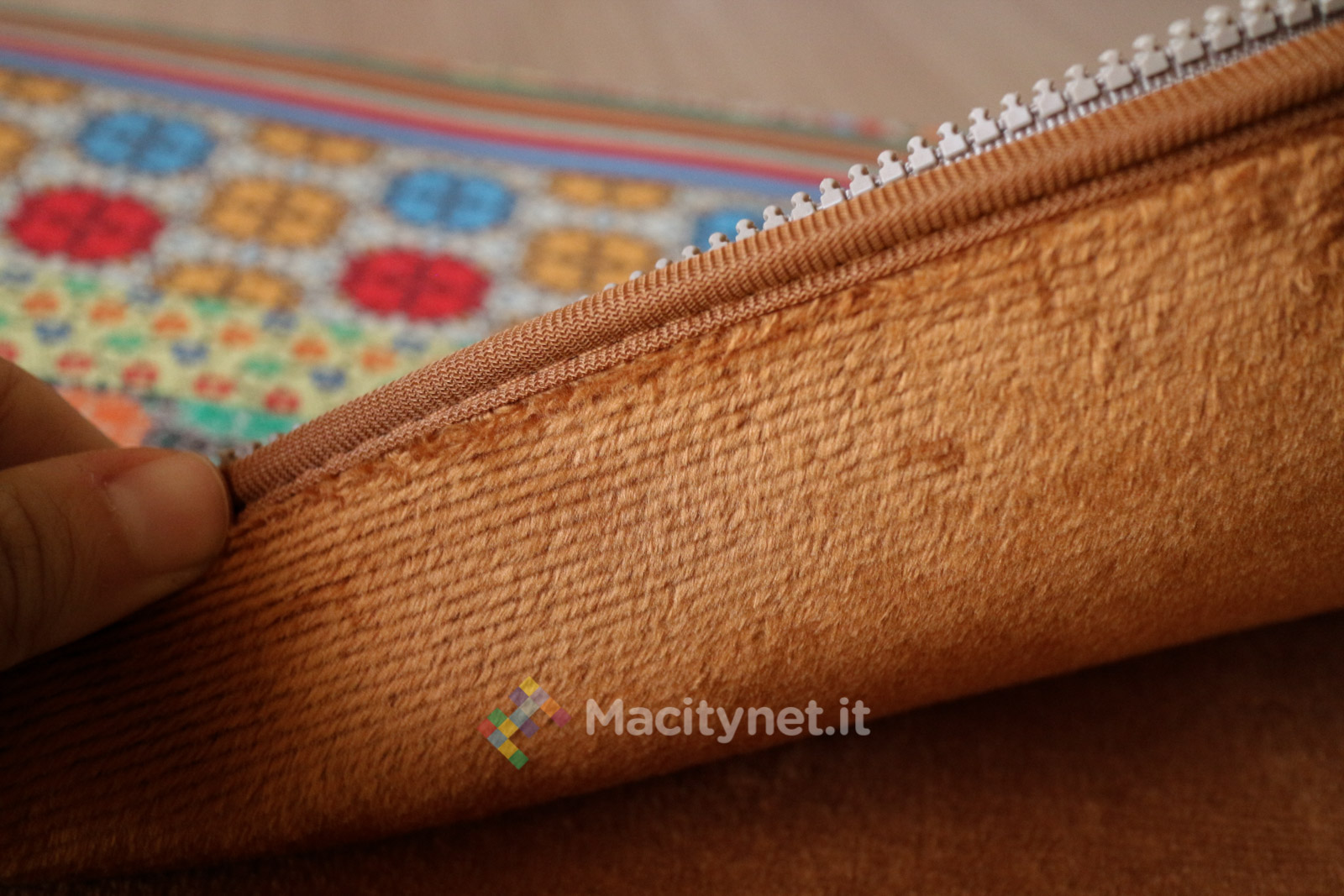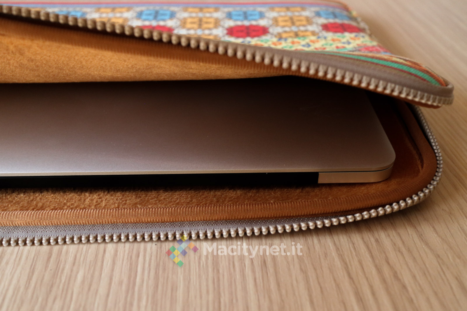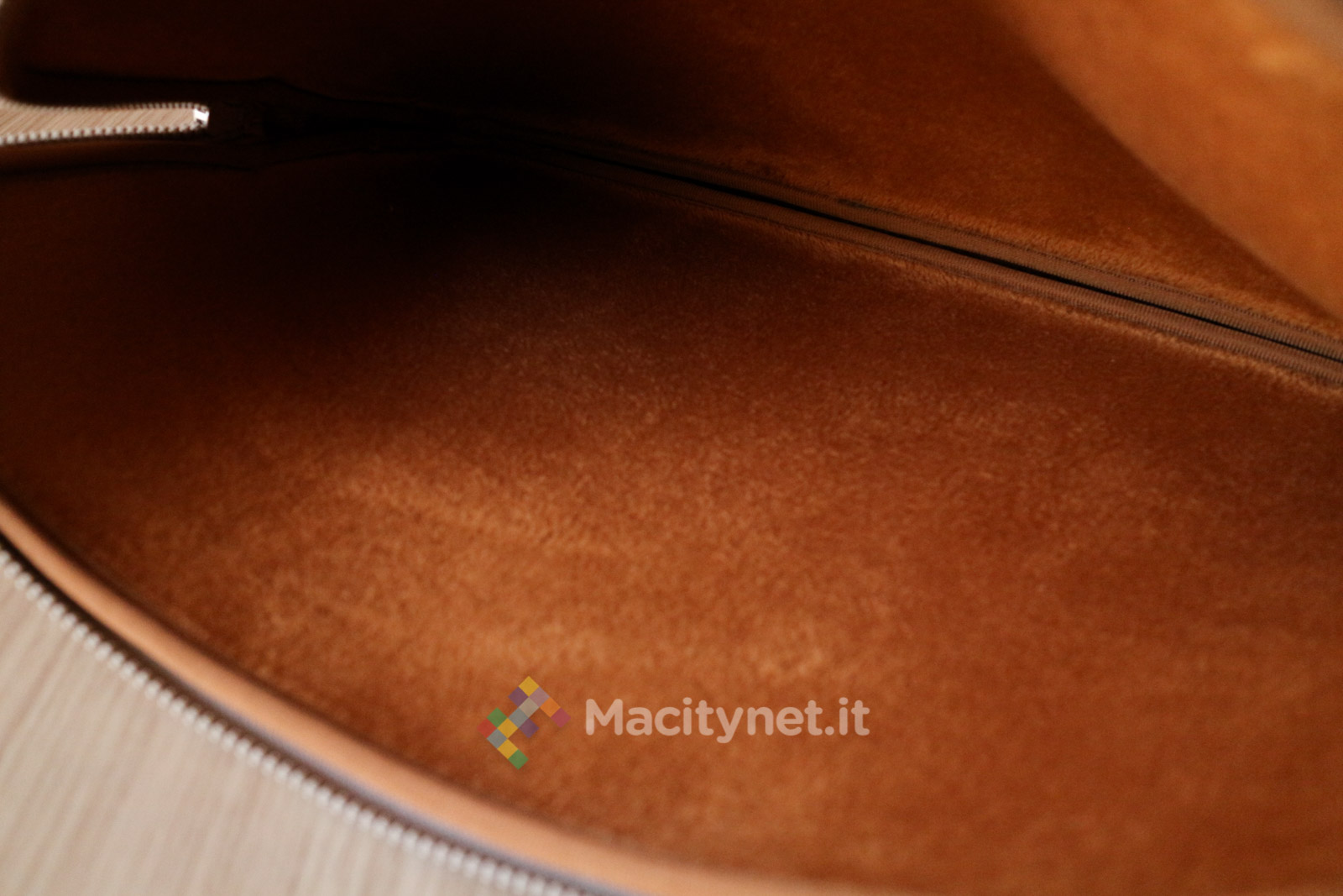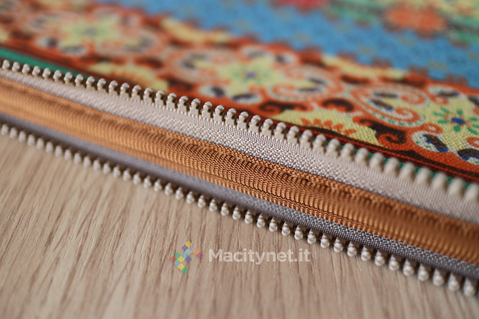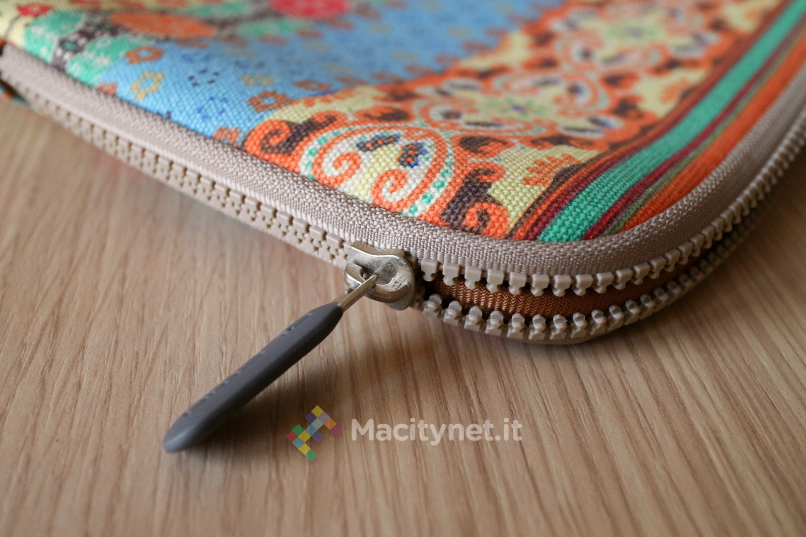La nostra redazione ha toccato con mano la versione per MacBook da 15 pollici, di cui alleghiamo una galleria fotografica in calce all’articolo. E’ del tutto simile ad un’altra custodia che abbiamo provato qualche settimana fa: ottima nei materiali, a partire dal morbido tessuto interno, così come sono anche qui solide le cuciture che la contraddistinguono. La cerniera antistrappo poi è molto robusta ed evita aperture accidentali che potrebbero far scivolare via il dispositivo protetto al suo interno.