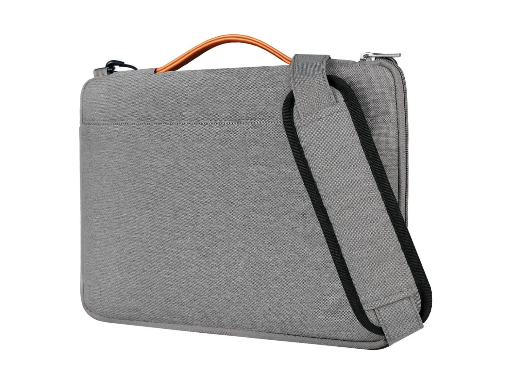 Ha una solida maniglia per il trasporto a mano e c’è la possibilità di portarla in spalla con la tracolla sganciabile, corredata da un’asola che ne migliora il confort quando appoggiata sulla spalla. Molto pratica l’ampia tasca frontale per mouse, alimentatore e poco altro. E’ realizzata in tessuto idrorepellente ed è una soluzione pratica ed estremamente versatile.