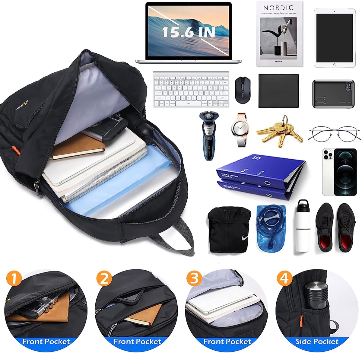 Questo zaino offre una capacità di 20L ed è perfettamente adatto alle dimensioni massime del bagaglio a mano di Ryanair. È realizzato in tessuto durevole e impermeabile ed è dotato di diverse tasche e scomparti per un’organizzazione efficiente. Scomparto per computer con cinturino imbottito ed elastico nella tasca posteriore. Il bagaglio da cabina ha una piccola tasca dedicata per una powerbank. E la tasca frontale può contenere iPad e quaderni, penne, passaporti. La piccola tasca superiore può contenere telefono e biglietto. La tasca interna può contenere oggetti importanti come telefono cellulare, carta d’identità e così via. La tasca a rete può contenere anche articoli da toeletta a mano.
