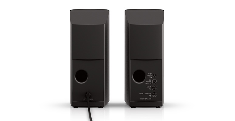 Il sistema Companion 2 Serie III è facile da installare. I due ingressi audio sul retro consentono di collegarlo a un PC e a una sorgente aggiuntiva – come un iPhone o un iPod. I controlli del volume sono disposti sulla parte frontale dello speaker di destra, insieme all’ingresso per le cuffie.