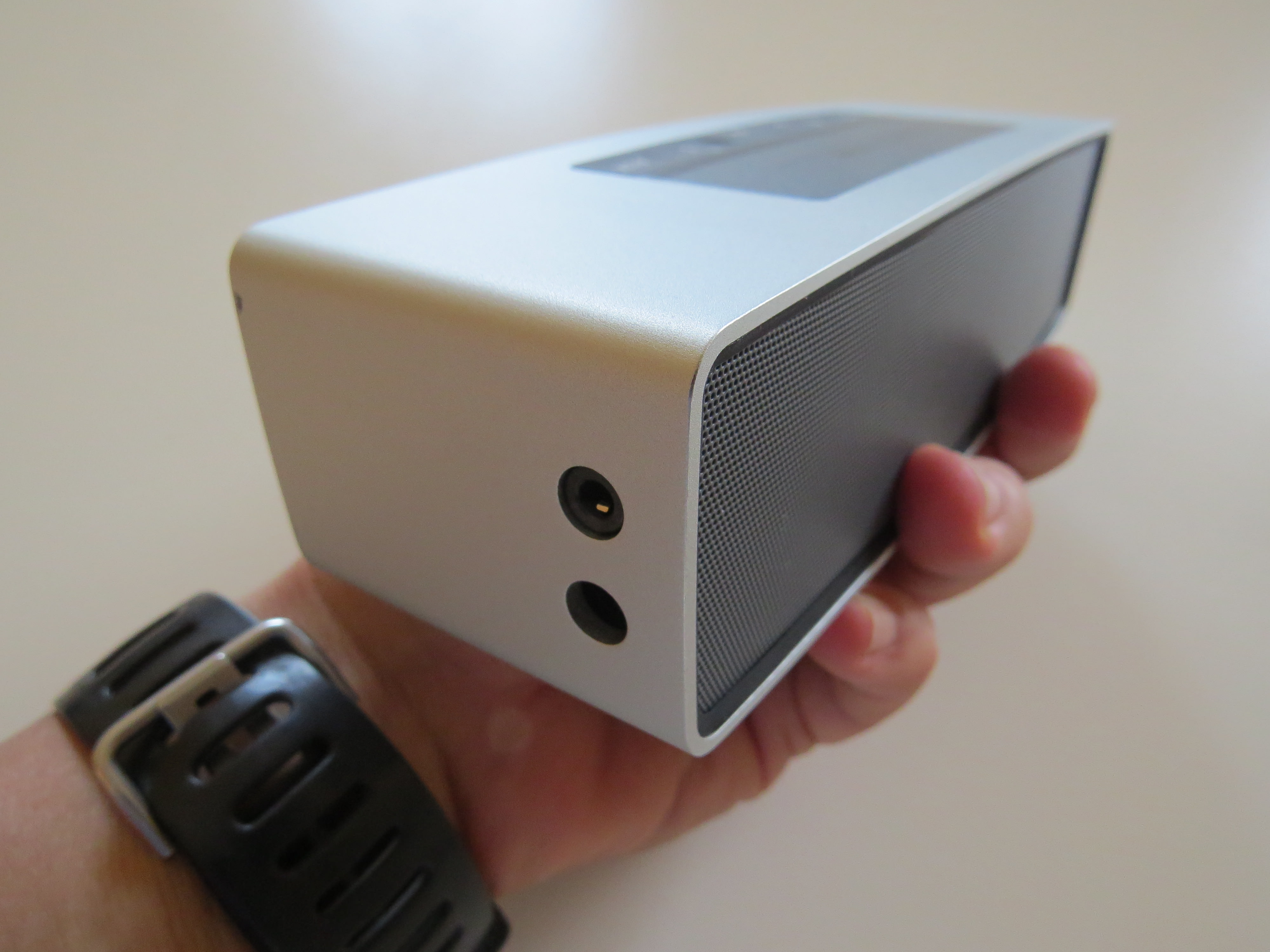 Il Sounlink Mini ha un peso considerevole (quasi sette etti) soprattutto in rapporto alle dimensioni (51X180X58mm) che fanno di questo dispositivo un prodotto effettivamente portatile, il che contribuisce a fornire una incredibile sensazione di solidità, mai vista in altri prodotti, magari stilisticamente interessanti, come ad esempio il Jawbone di Jambox che ha sicuramente un profilo molto originale e forse anche più moderno del Soundlink mini, ma che preso tra le mani sembra più fragile.