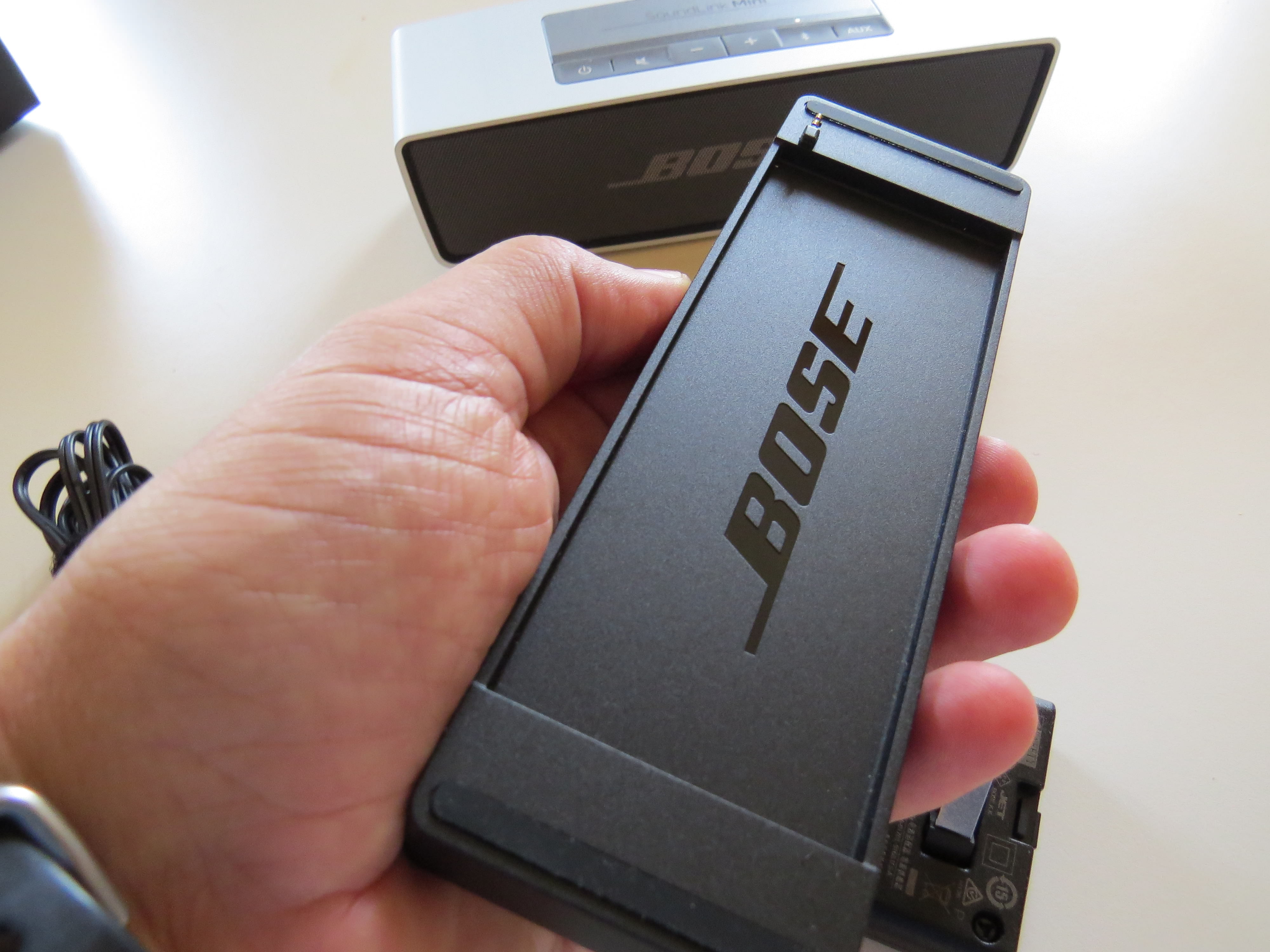 Il Soundlink Mini, design e materiali a parte, presenta alcuni elementi di originalità a cominciare dal dock per la ricarica della batteria interna. Anche se è presente un connettore per collegare direttamente l’alimentatore esterno (finalmente compatto, cosa che non si può dire per altri prodotti Bose) all’amplificatore. Questa sorta di dock con un connettore a contatto è è un punto di forza dell’accessorio. Basta appoggiare il Soundlink mini e automaticamente la corrente passa alla batteria; la connessione è segnalata da un apposito LED che spento è invece invisibile e da un suono.