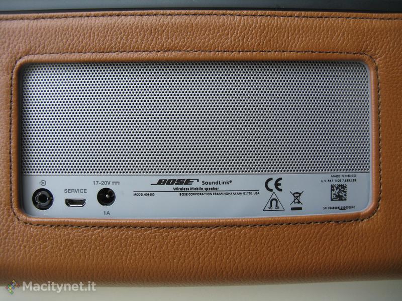 Sul retro troviamo l’ingresso jack audio per collegare computer e altre sorgenti prive di Bluetooth